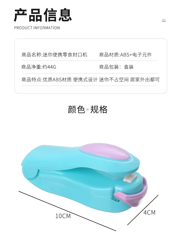 スナックシール機小型ミニシール機包装家庭用ビニール袋食品保存真空シールクリップ