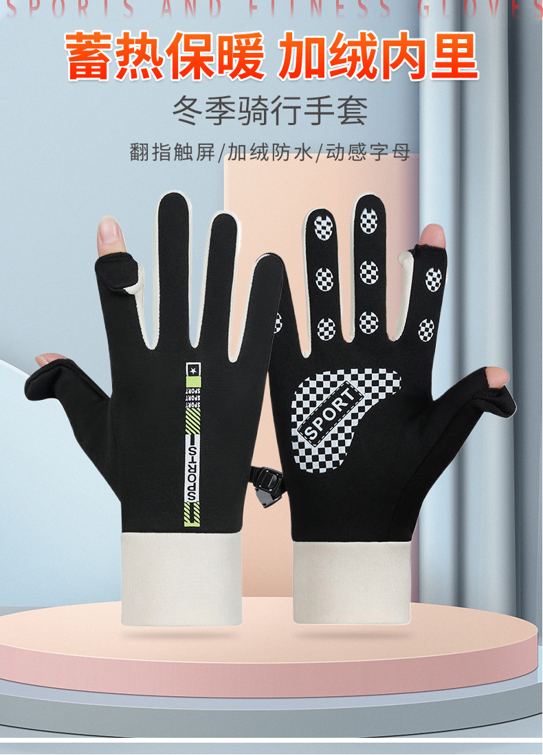 冬季保暖手套情侣款翻盖加绒防寒防泼水加厚骑行加绒手套户外保暖