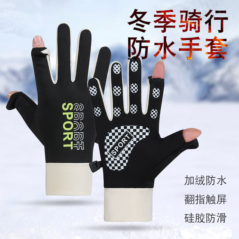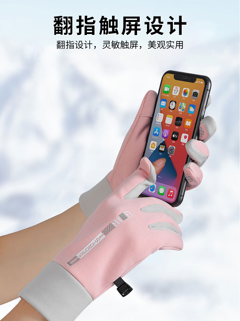 批发秋冬户外骑行保暖手套女士防风防寒加绒手套防水翻盖触屏手套