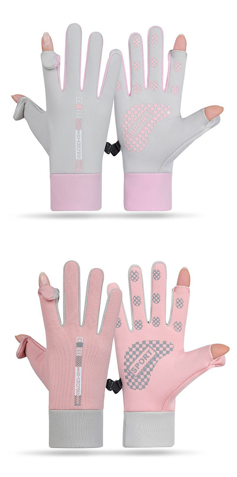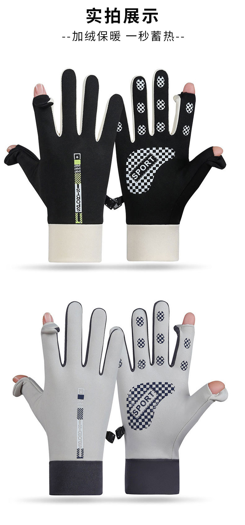 カップル用の暖かい手袋、防風性、撥水性、伸縮性のある秋冬の厚みのあるベルベットの指なしアウトドアサイクリンググローブ