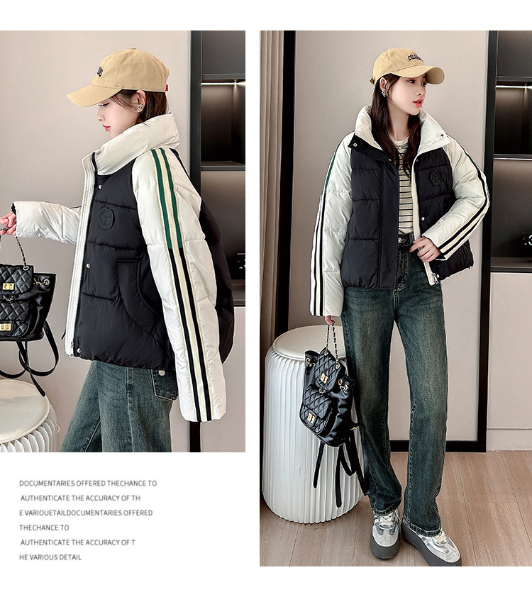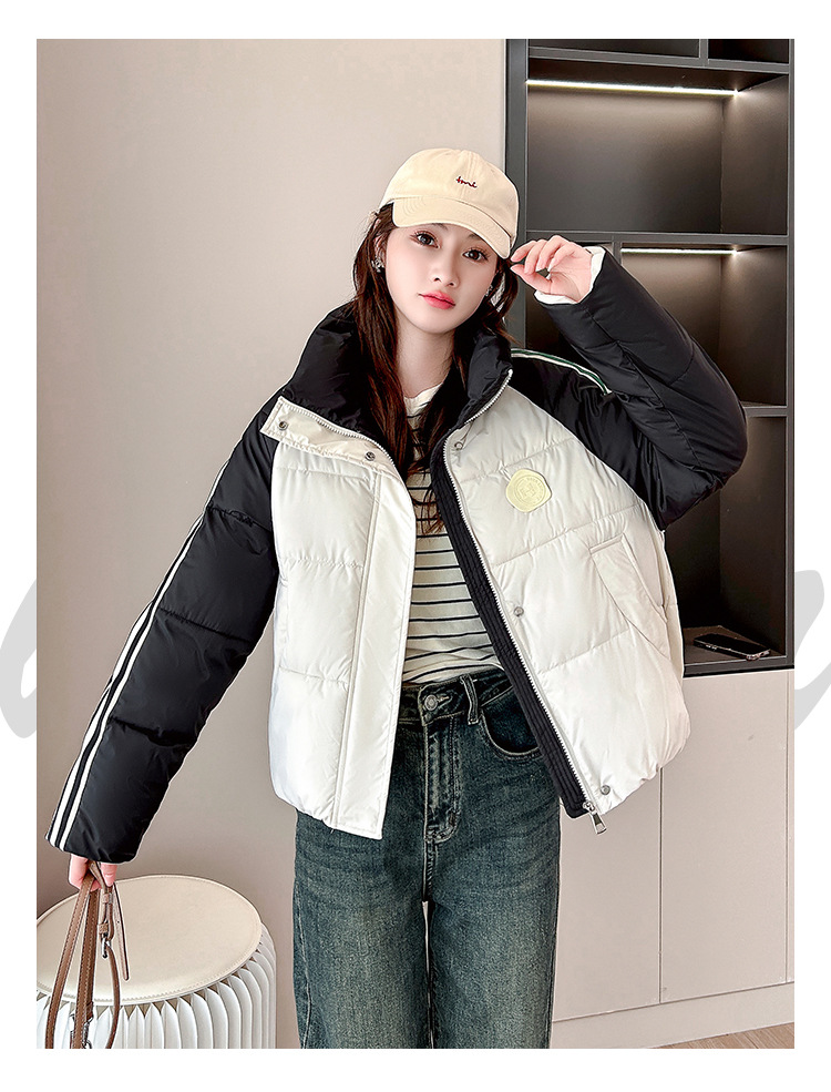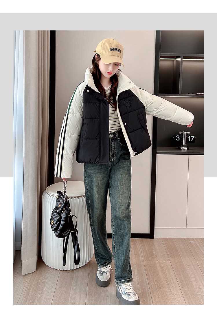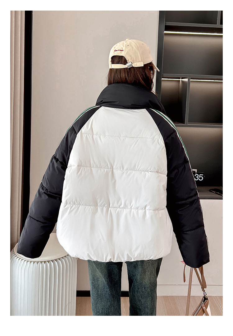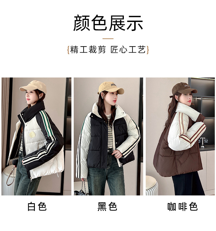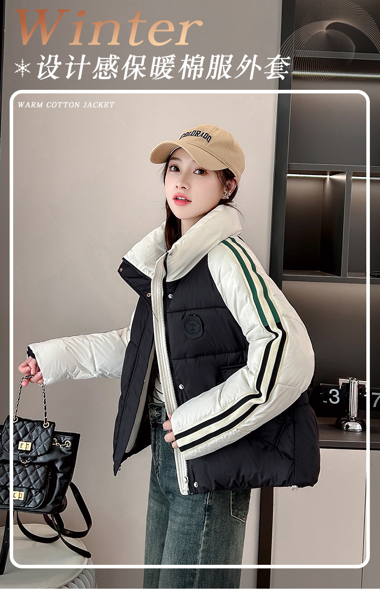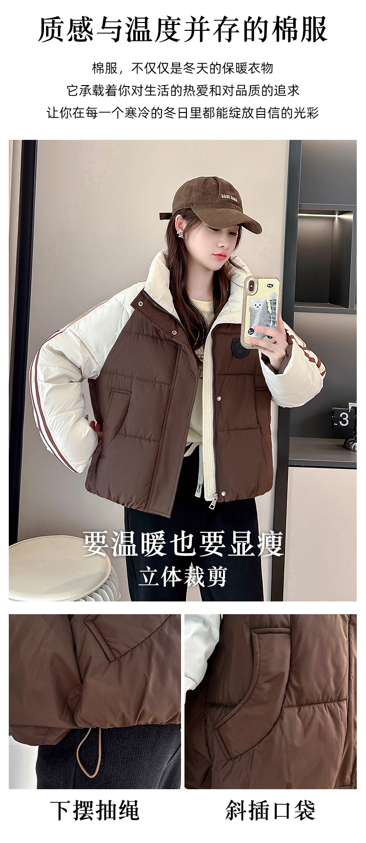 綿の服の女性の短い金の2024冬の新型の韓国版のゆったりしている大きいサイズは色の学院の風のパンの綿の服にぶつかってコートを厚くします。