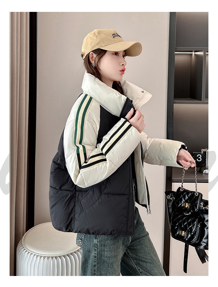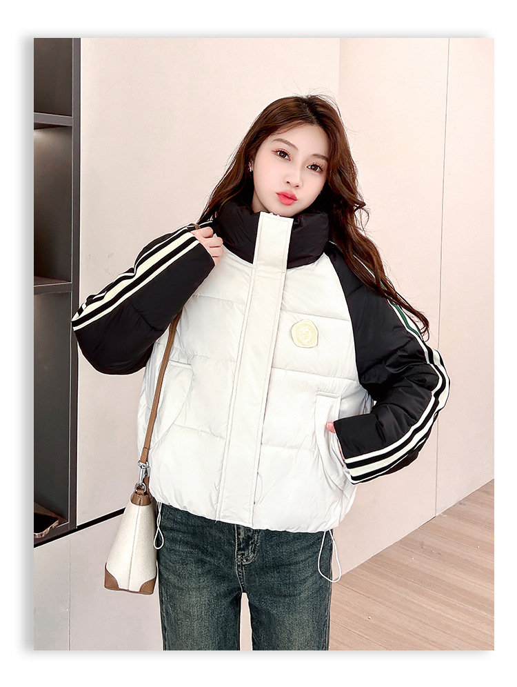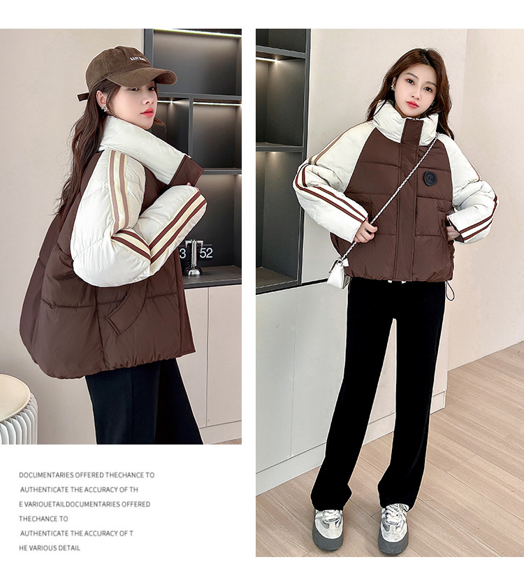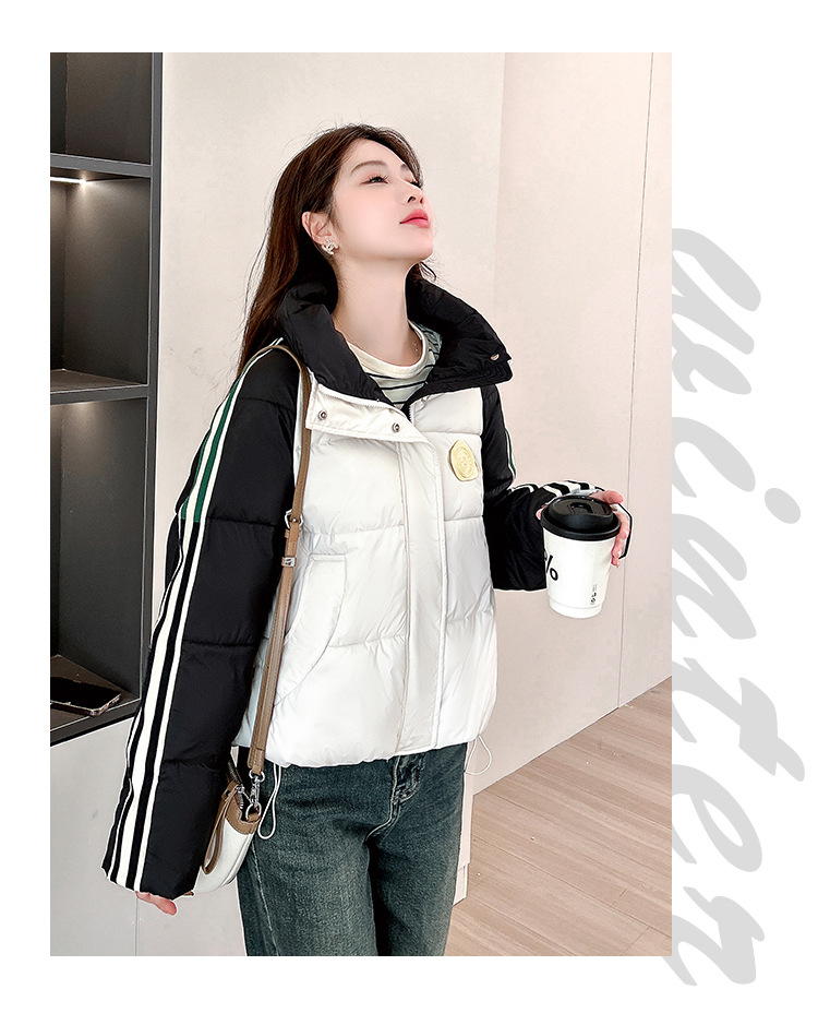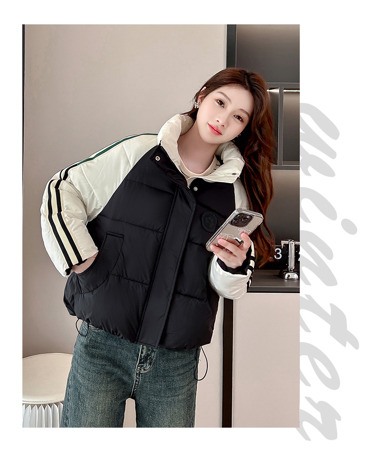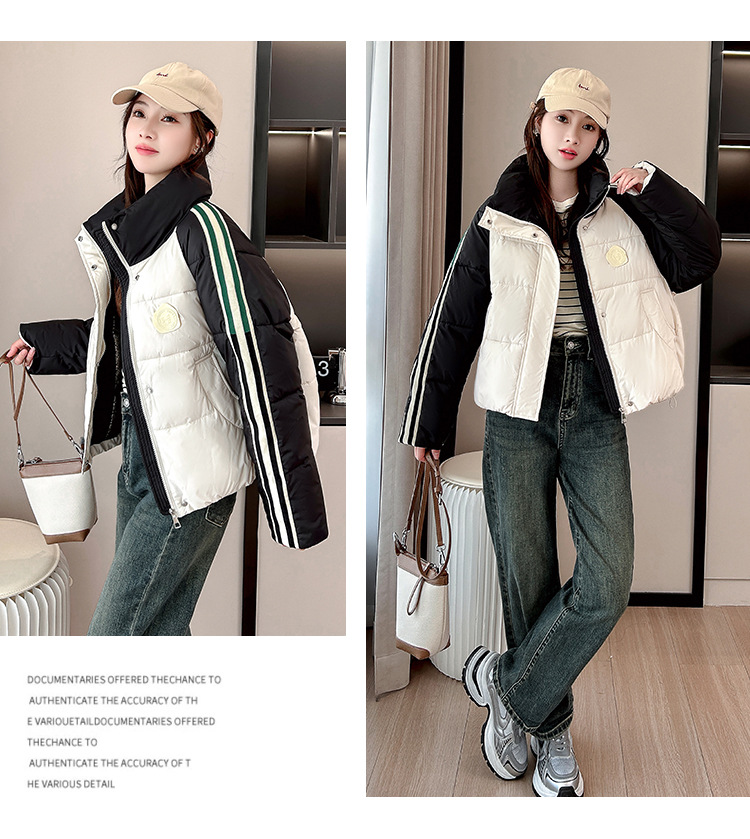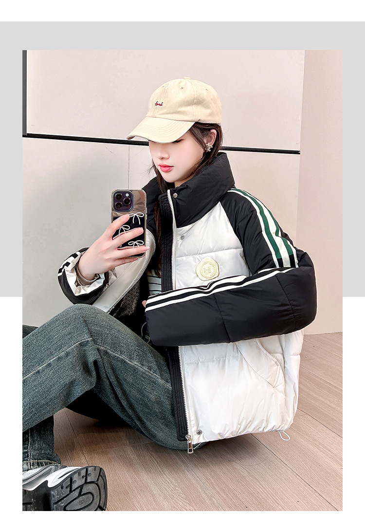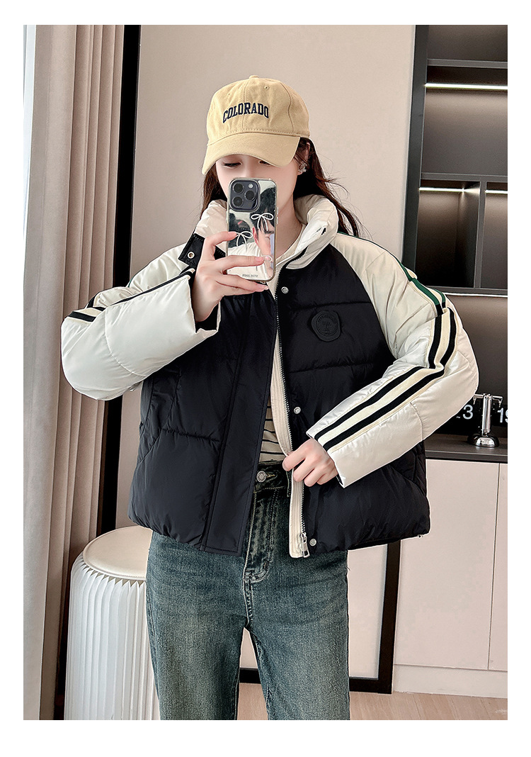 綿の服の女性の短い金の2024冬の新型の韓国版のゆったりしている大きいサイズは色の学院の風のパンの綿の服にぶつかってコートを厚くします。