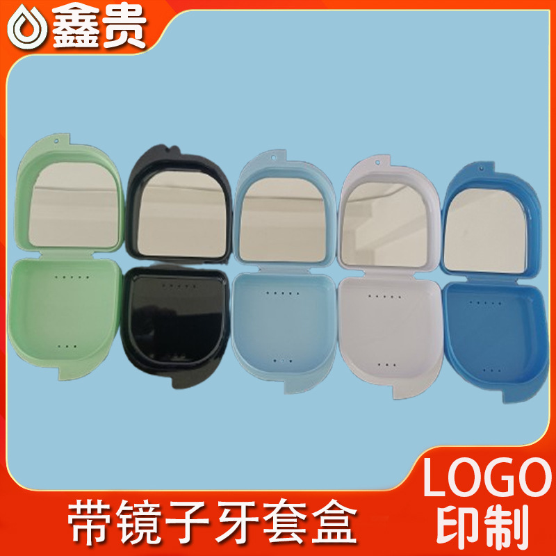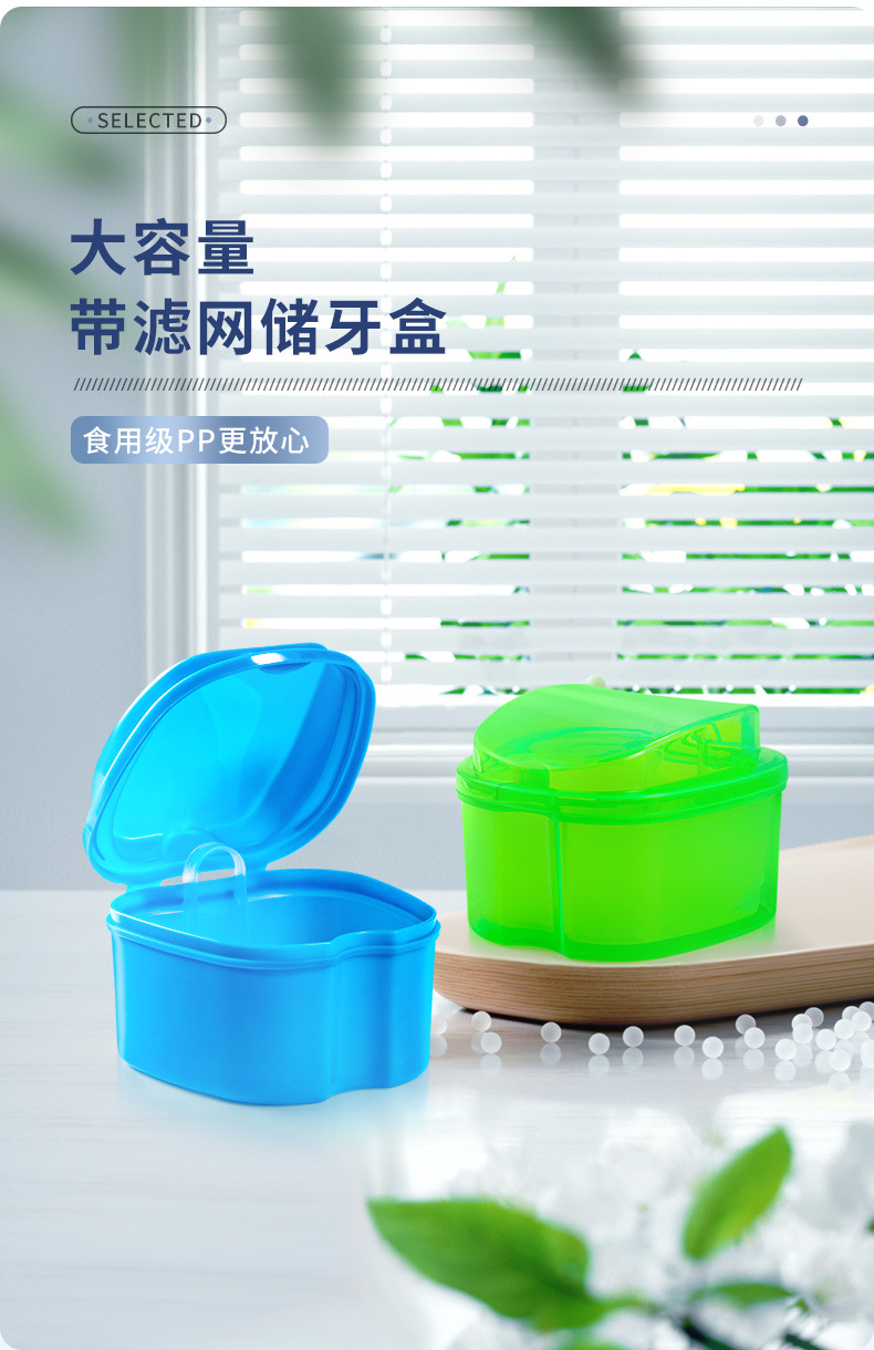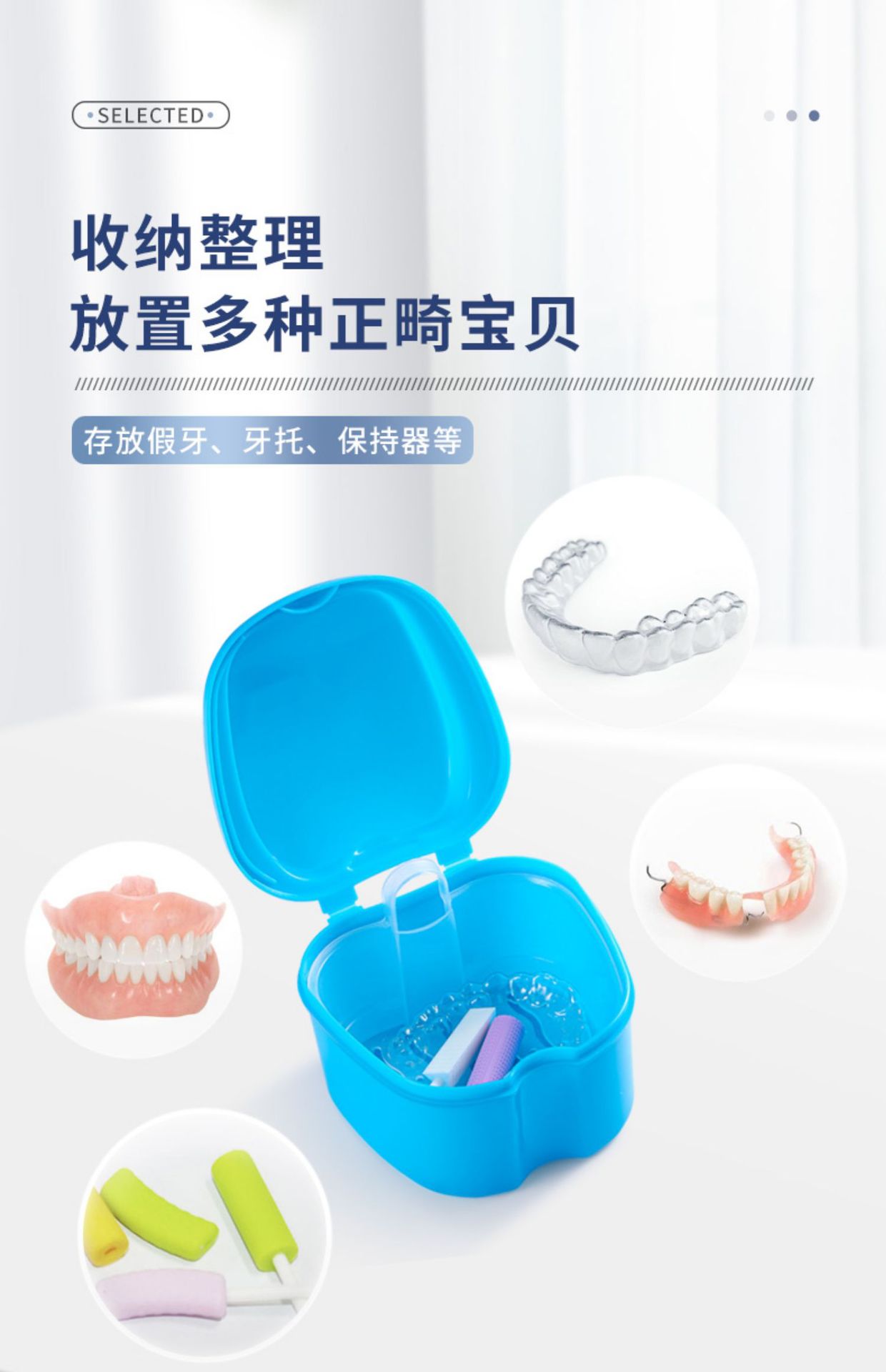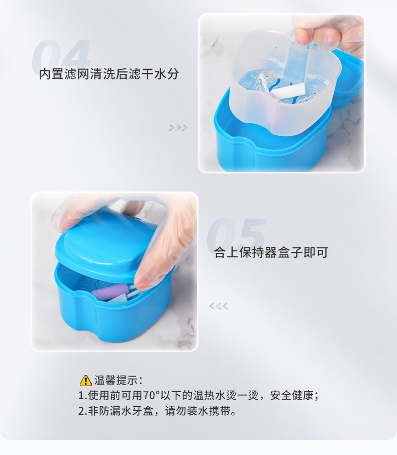 食品级材质假牙盒logo印刷苹果牙盒带清洗义齿假牙收纳沥水浸泡盒