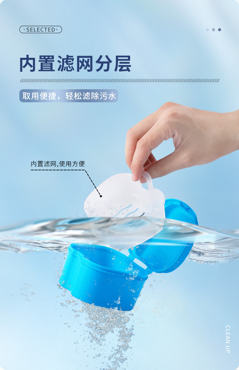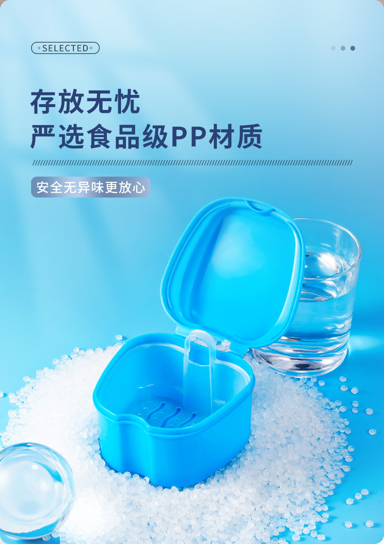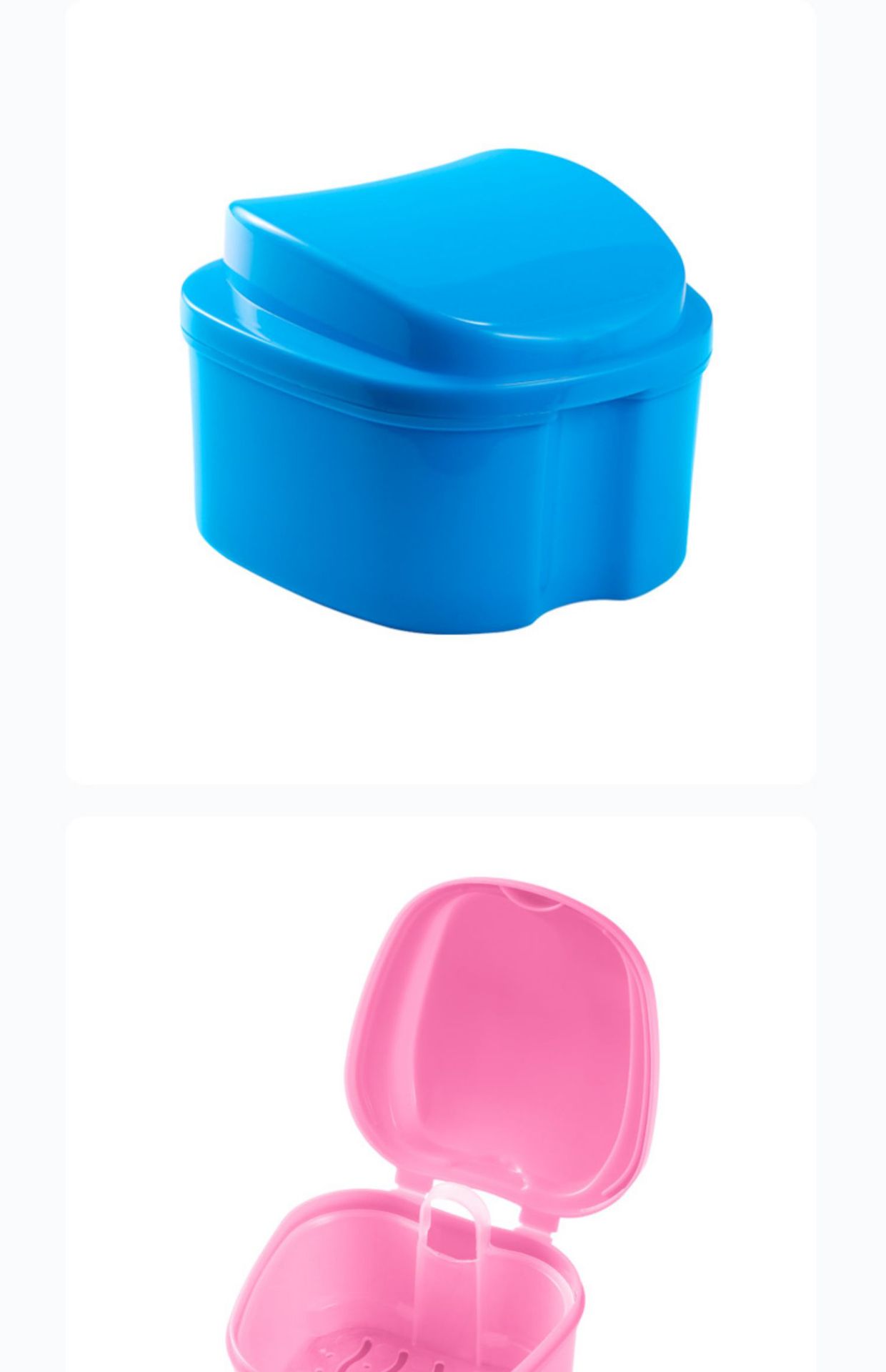 食品级材质假牙盒logo印刷苹果牙盒带清洗义齿假牙收纳沥水浸泡盒