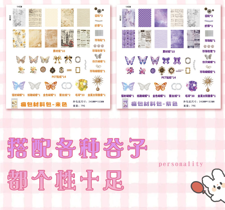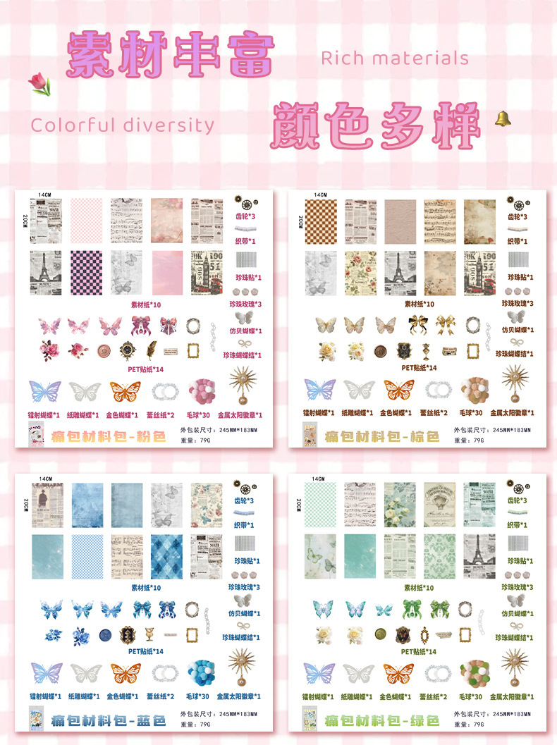 ジルーユジアンチェンピン 次元幻想シリーズ-痛包谷子扎包DIY手帳デコレーション素材詰め合わせパック