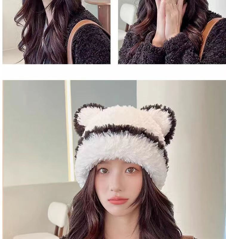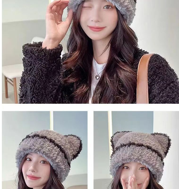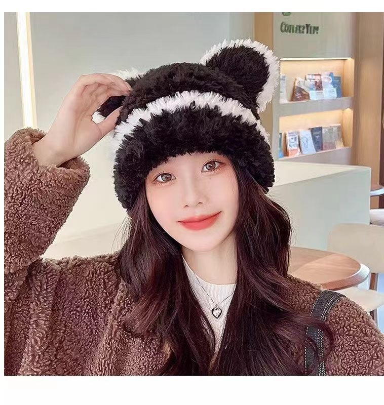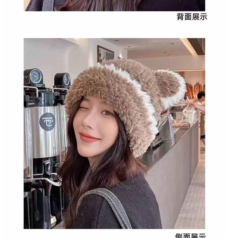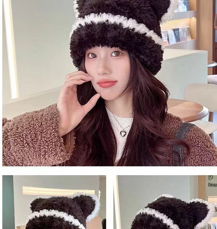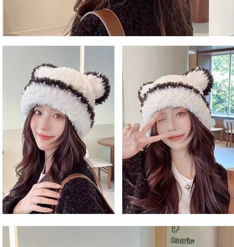 大きいサイズの毛の帽子の女性の秋冬の厚い保温のストライプは色のニットの帽子のかわいい熊の耳の毛糸の帽子にぶつかります。