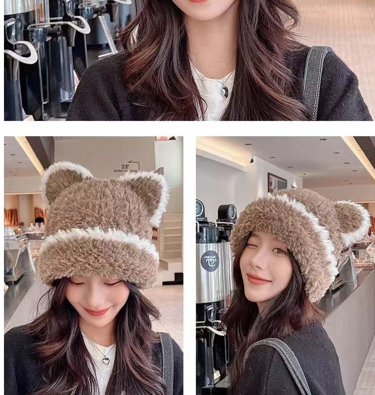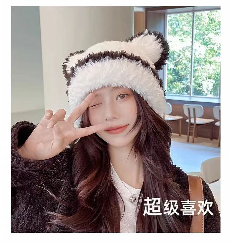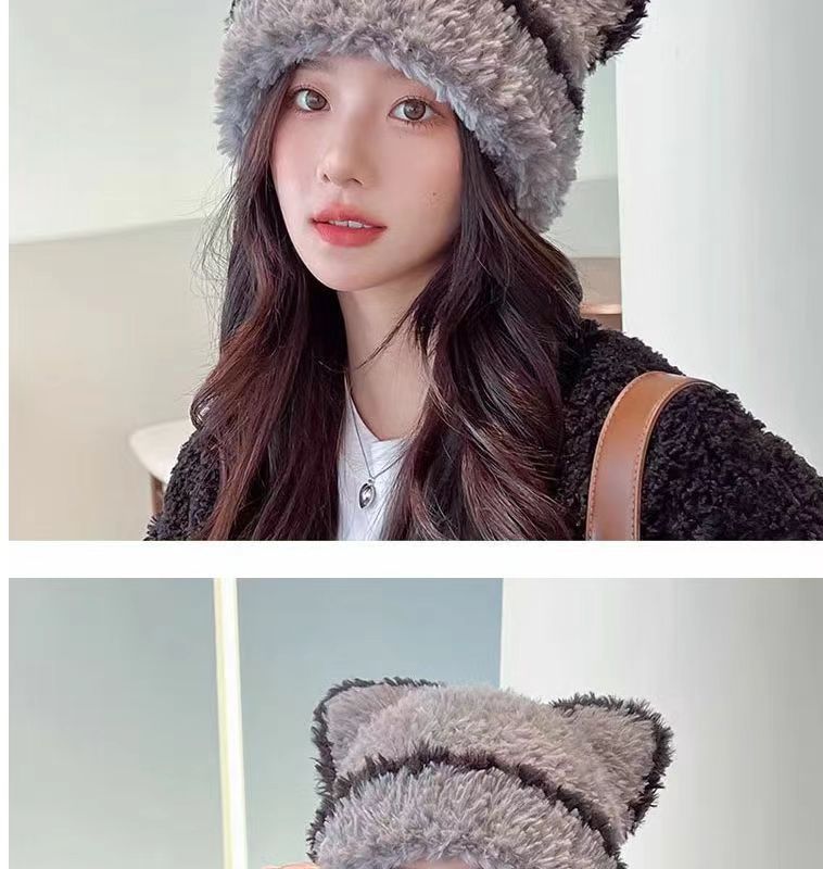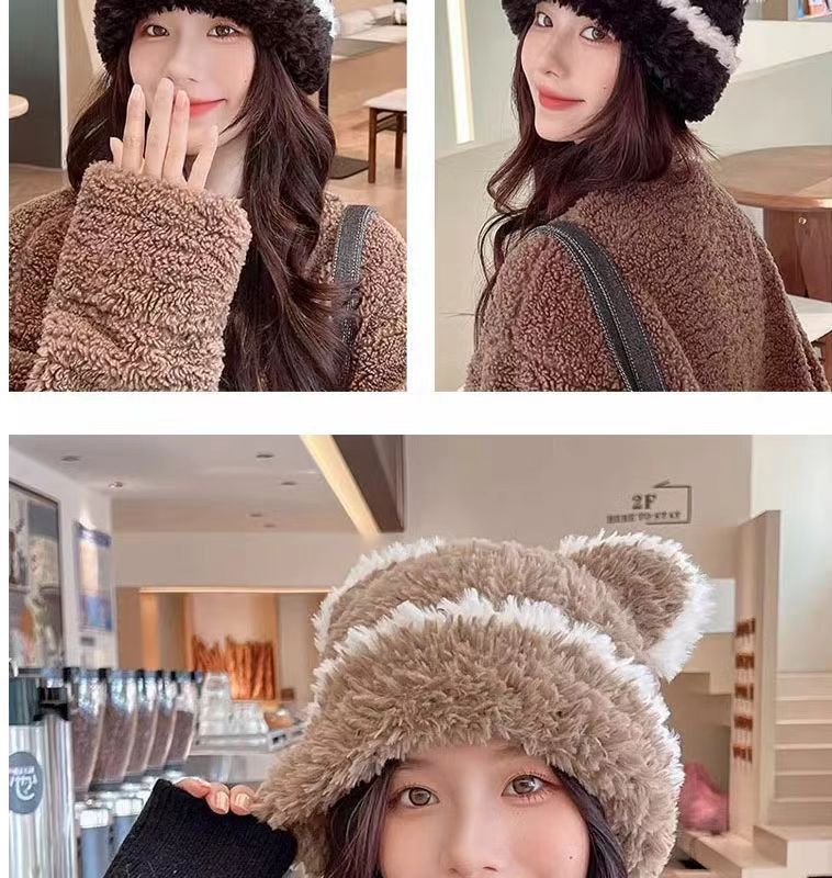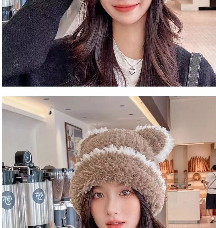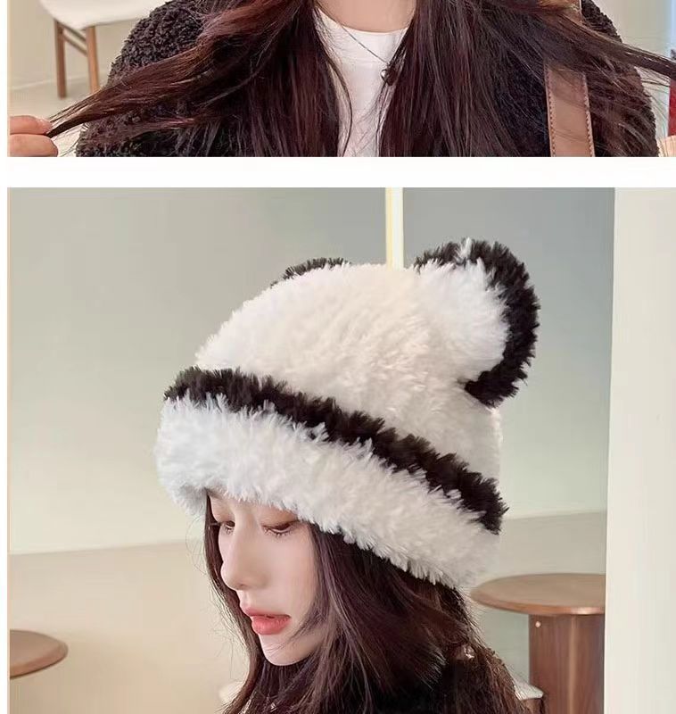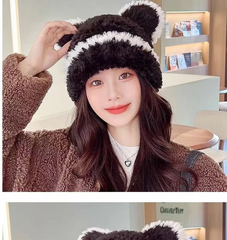大きいサイズの毛の帽子の女性の秋冬の厚い保温のストライプは色のニットの帽子のかわいい熊の耳の毛糸の帽子にぶつかります。