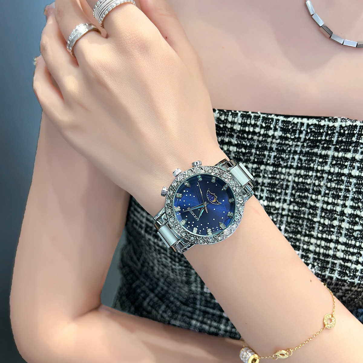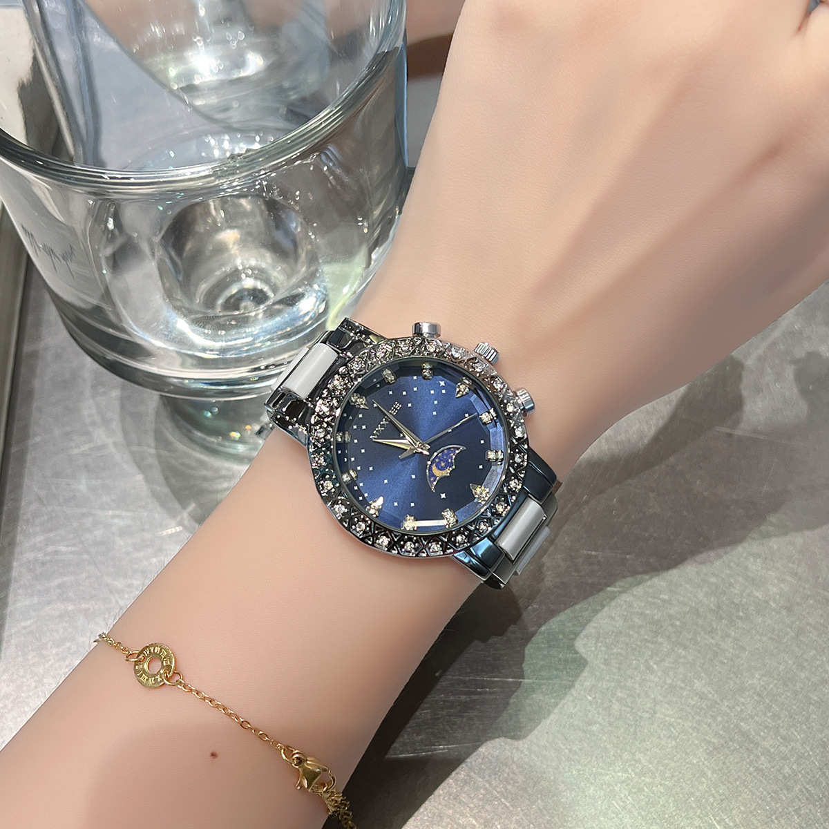 スイス潮牌学生ベルト鋼帯腕時計星空満天星ファッションドリル女性腕時計防水石英