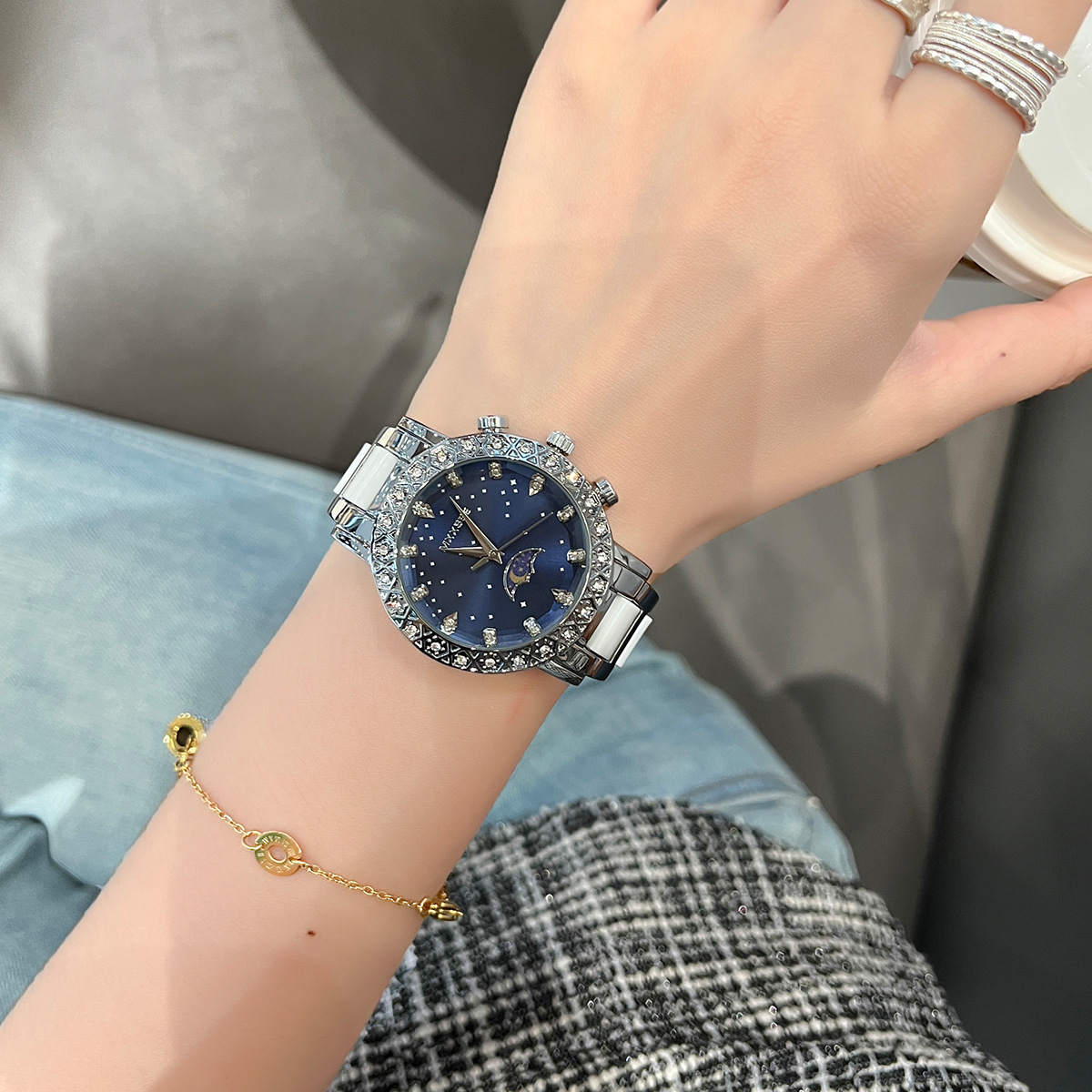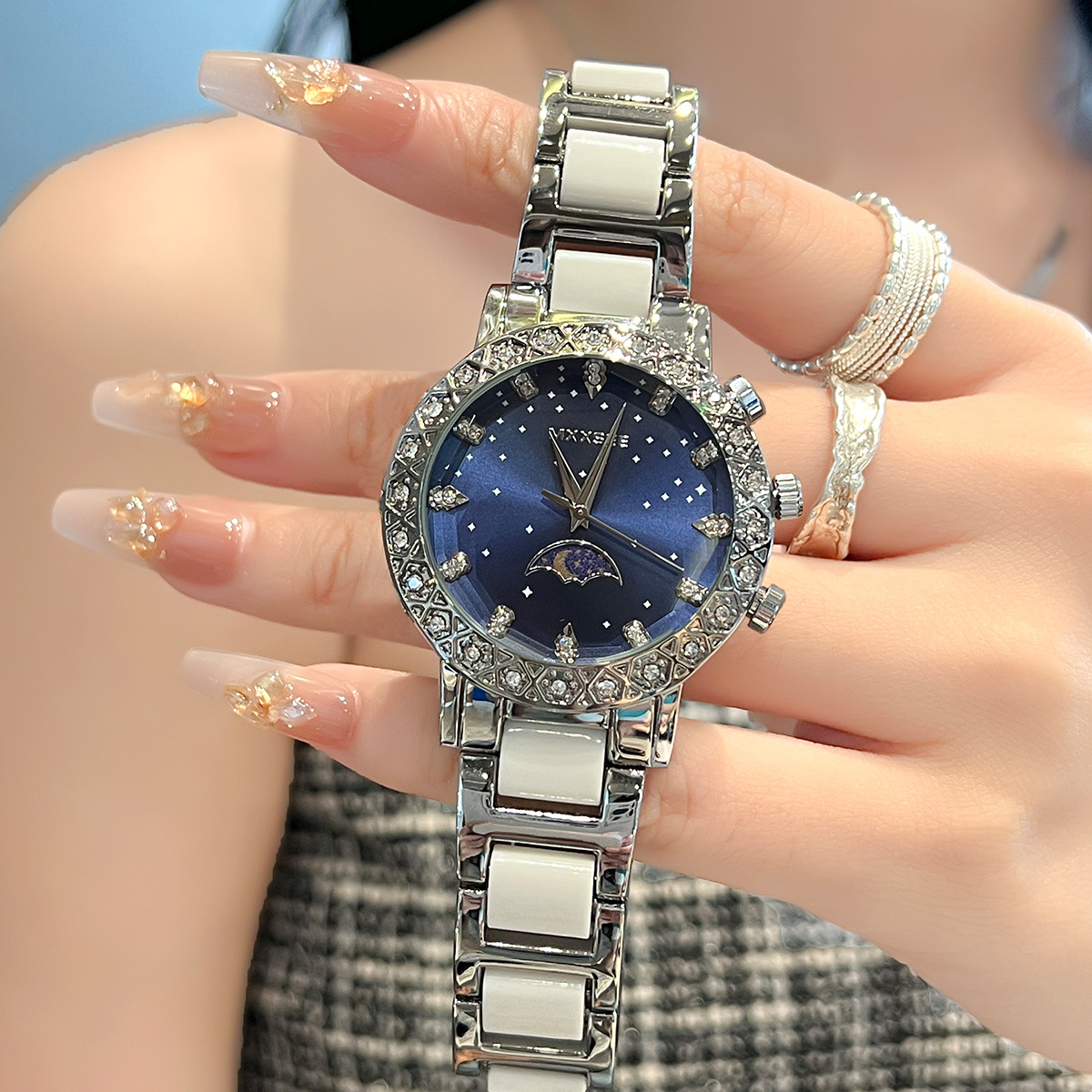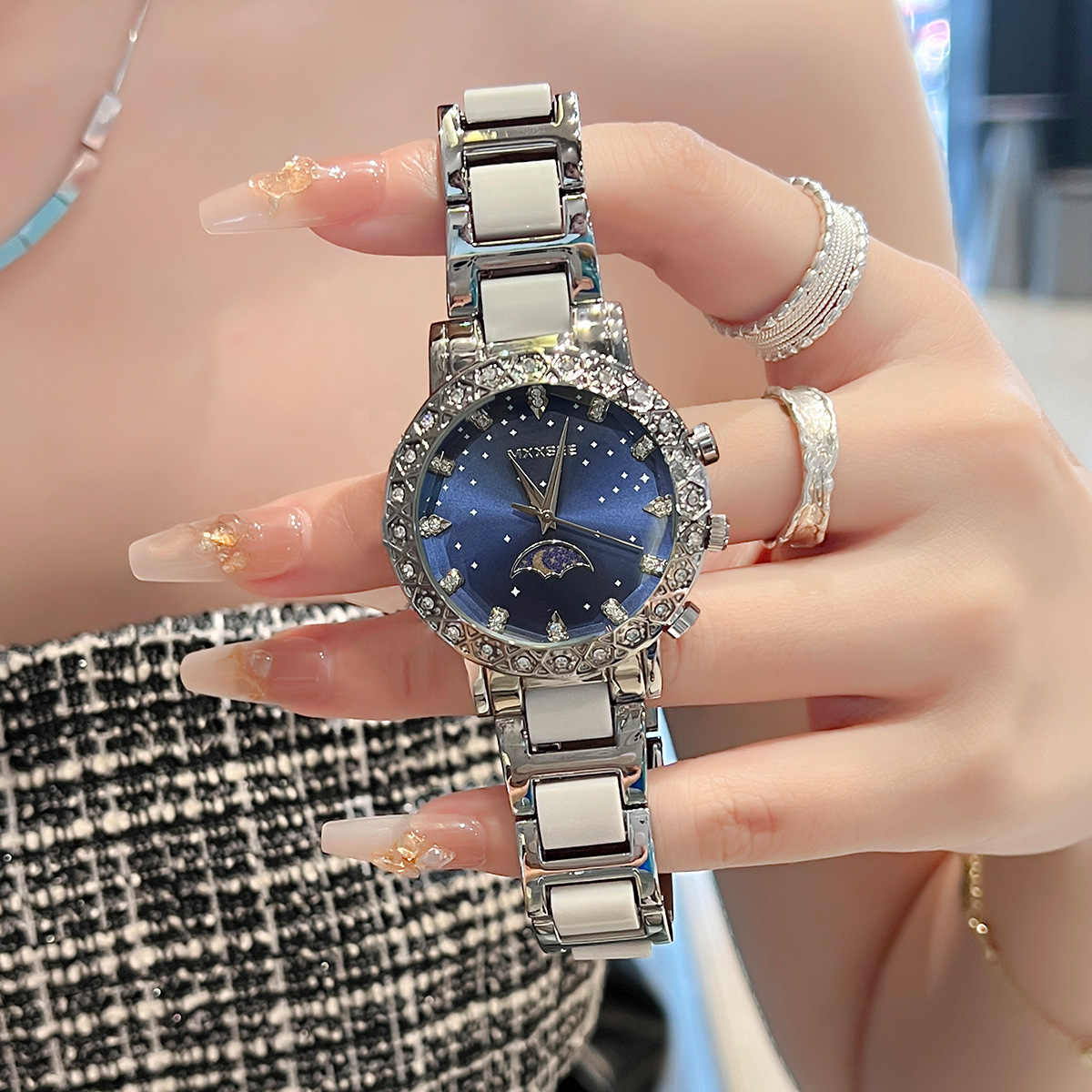 MXXSEEディザトーン起爆ラウンドダイヤモンド女性バンドカレンダー鋼帯セラミック腕時計防水防汗女性卸売り