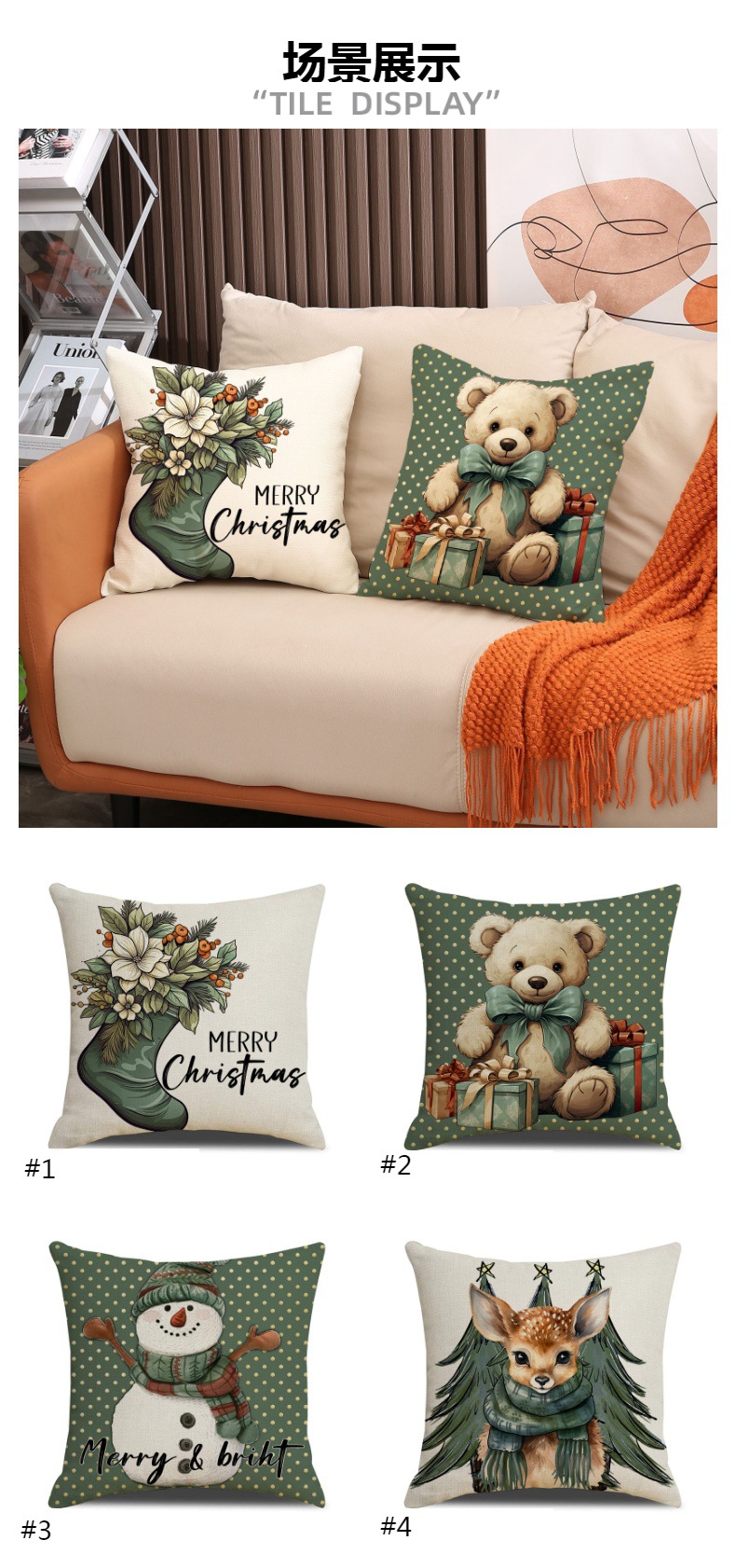 国境を越えたクリスマス抱き枕カバークリスマスツリー亜麻プリントソファー枕家庭リビングクッションセット抱き枕卸売り