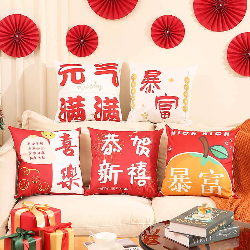 2024新型ソファー抱き枕新年のお祝い枕快適なクッション中国式の短いぬいぐるみの抱き枕カバー