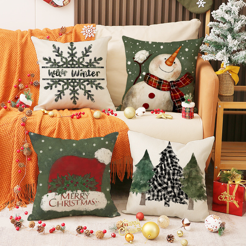 新しいホット販売クリスマス枕カバー雰囲気装飾クッションリネンプリント雪だるま枕カバーリビングルームソファクッション