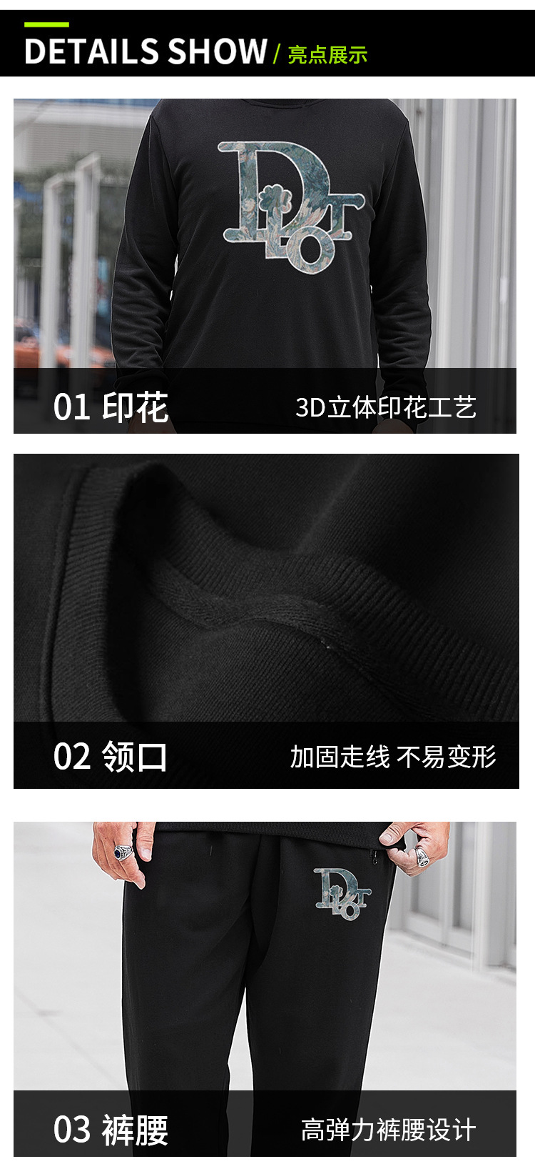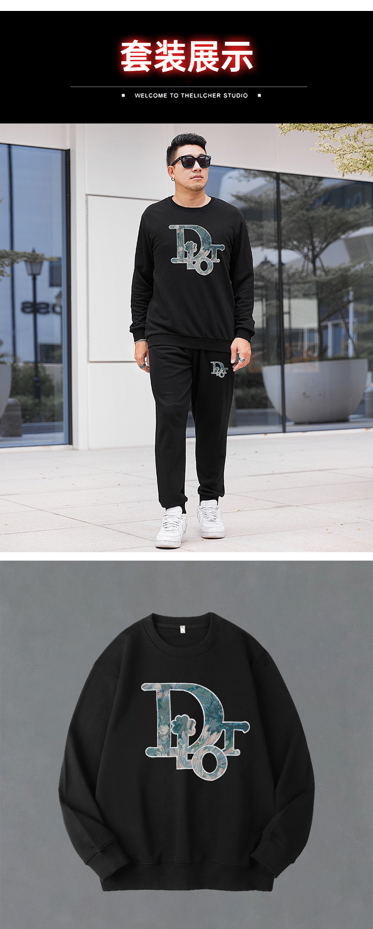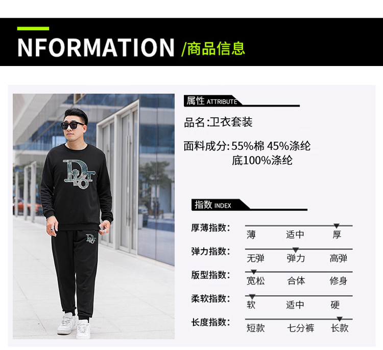 DW1001-DW1042特大サイズ400斤運動綿合集デブ不加毛衛衣ズボン男秋冬