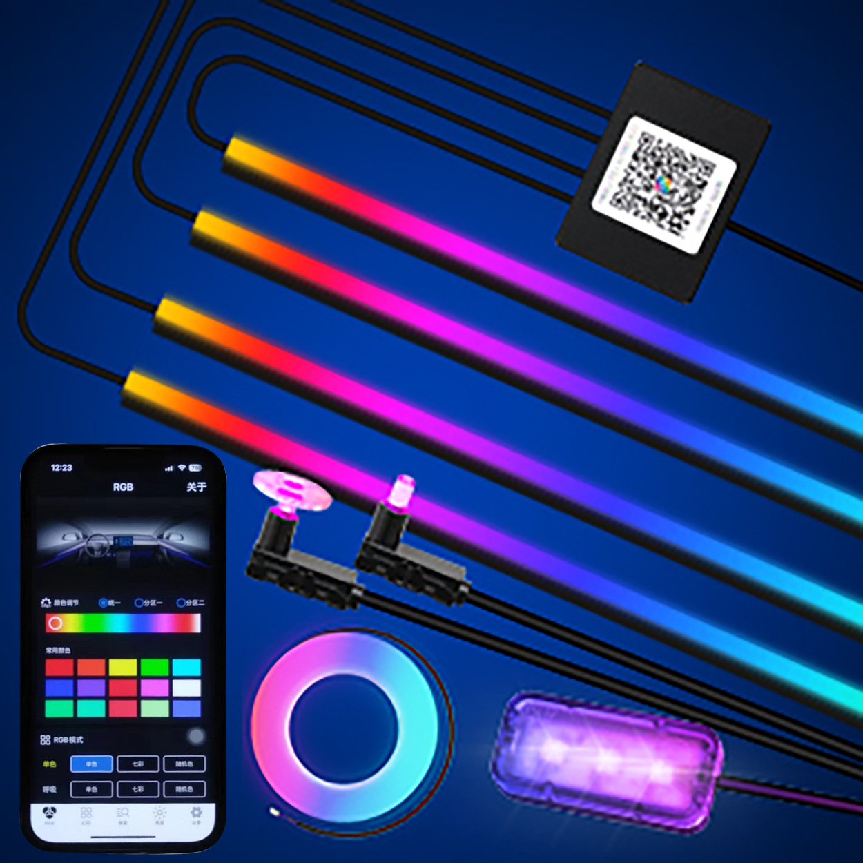 クロスボーダー18灯6灯ステルスアクリル灯条RGB幻彩256色自動車装飾led lamp雰囲気灯