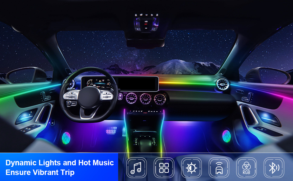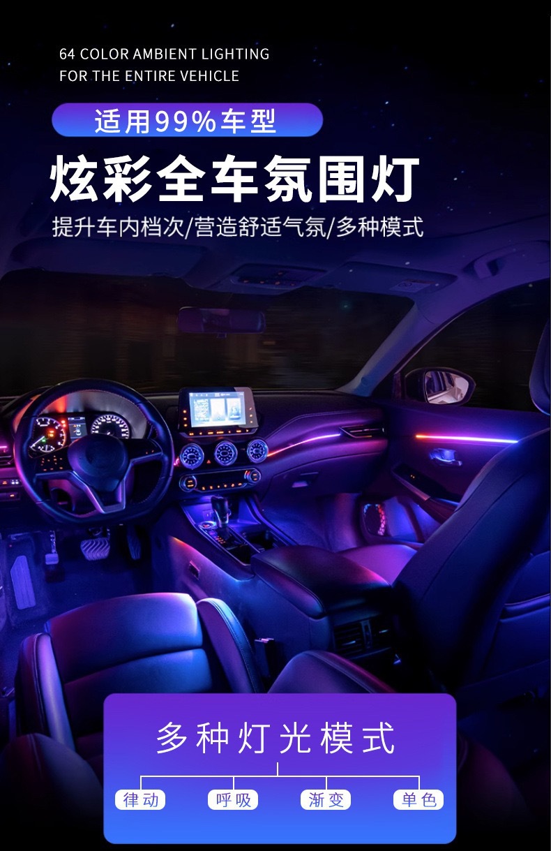 18in1自動車雰囲気灯隠れ式app音響制御LED雰囲気灯車内幻彩七色灯帯