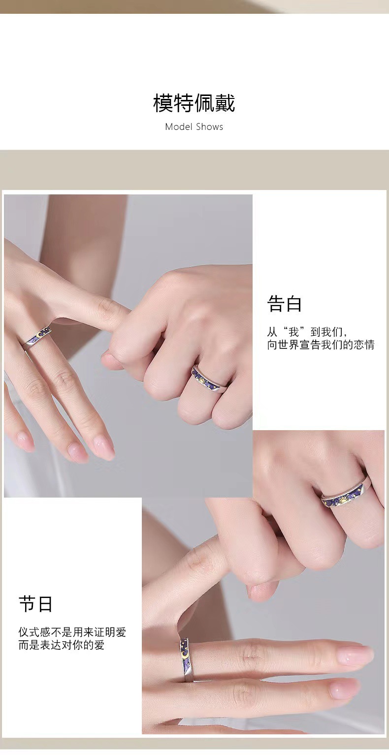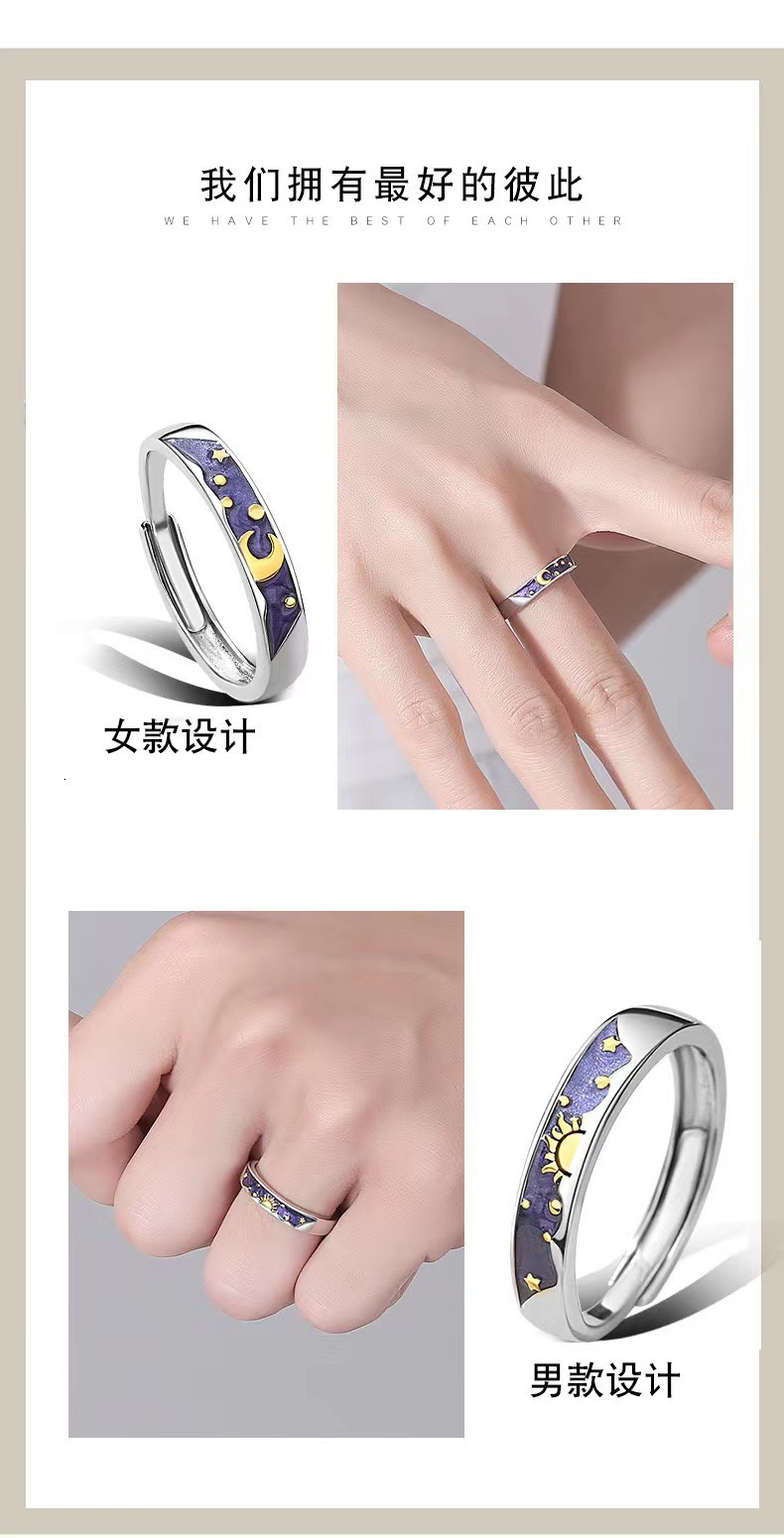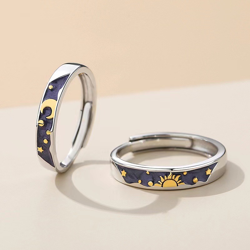 日と月のカップルリング配電プロセス日と月ニッチデザインハイエンド調節可能なリング女性用