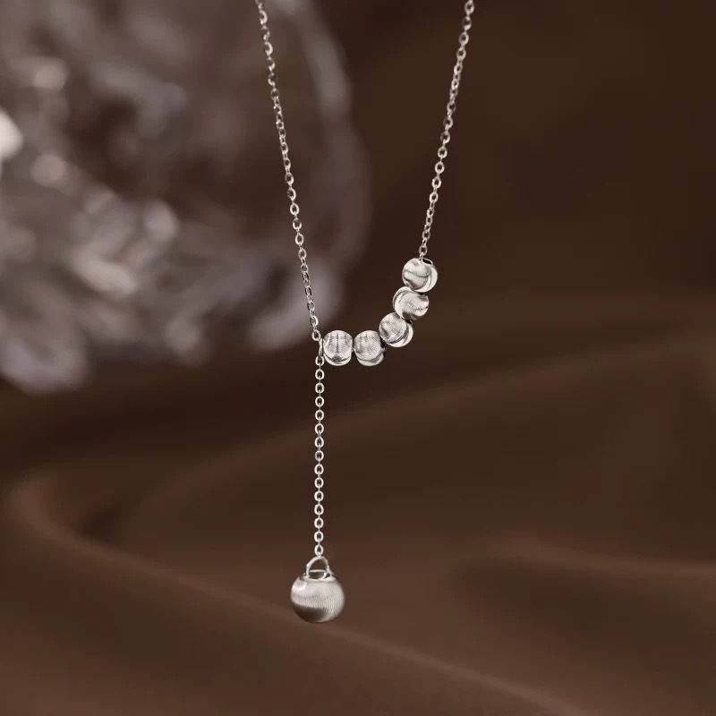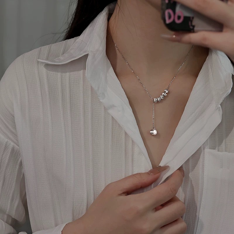 S925銀猫眼球伸線ネックレス女性軽豪華小衆高級感鎖骨鎖輸送円珠流蘇ペンダント