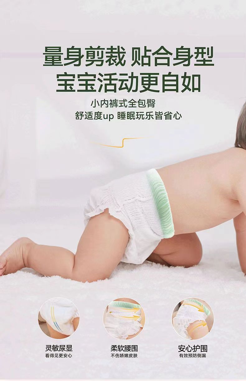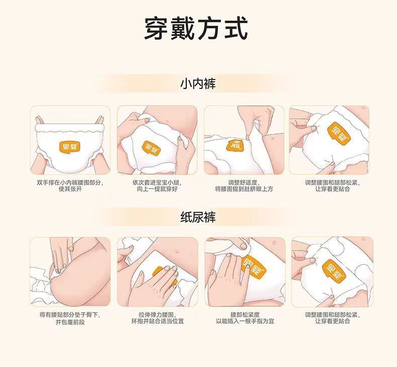 宜乳児夢想家は50枚のズボンの紙おむつを試着しています。