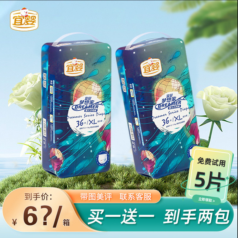 宜乳児果物弱酸紙おむつは超薄型で通気性があり、赤ちゃんの尿が濡れない2箱の箱に入っている