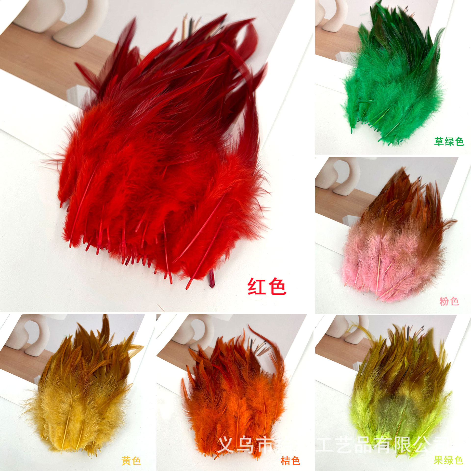 8-15cm長紅先羽カラー鶏毛捕夢網逗猫棒羽子装飾部品diy手作り材料