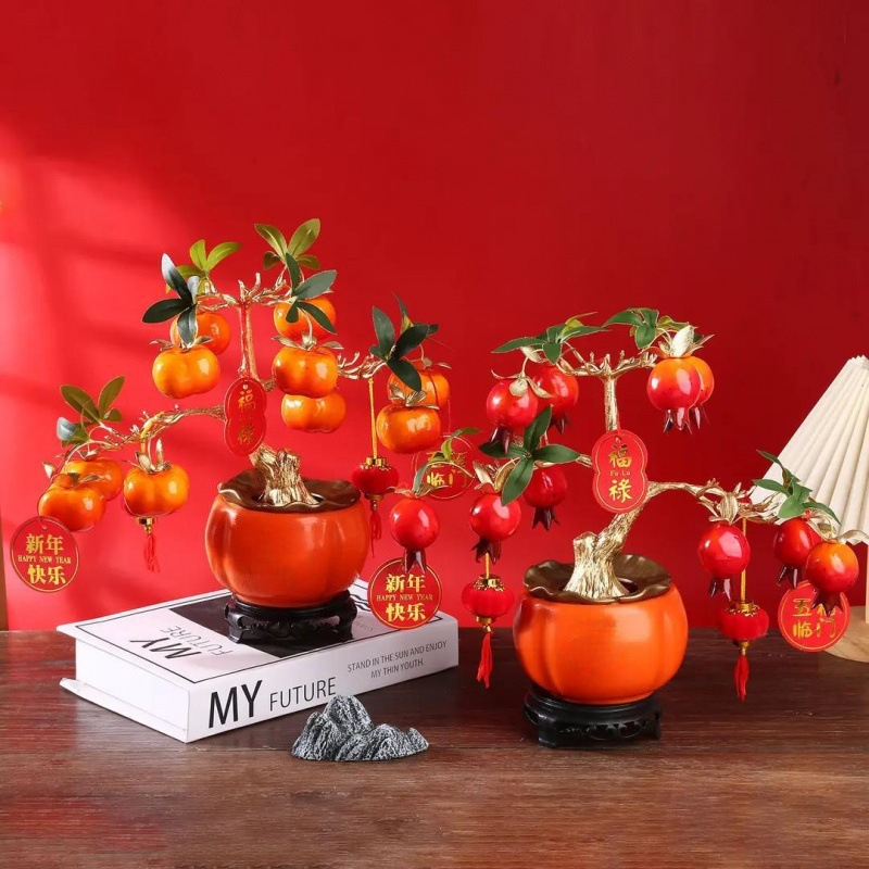 马年春节年宵花福桶柿子石榴葫芦春节氛围装饰摆件桌面过年装饰