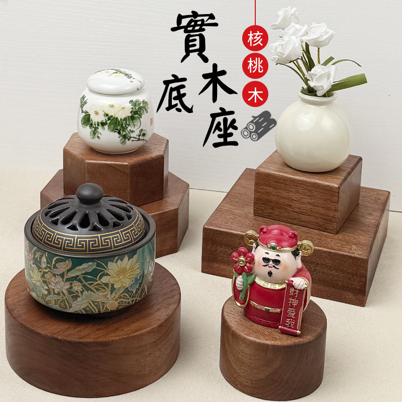 黑胡桃核桃木工艺品摆件花瓶实木底托桌面加厚增高架创意佛像底座