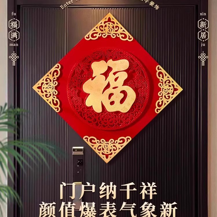 马年福字门贴2026新款高端植绒布立体自粘入户大门创意福字贴