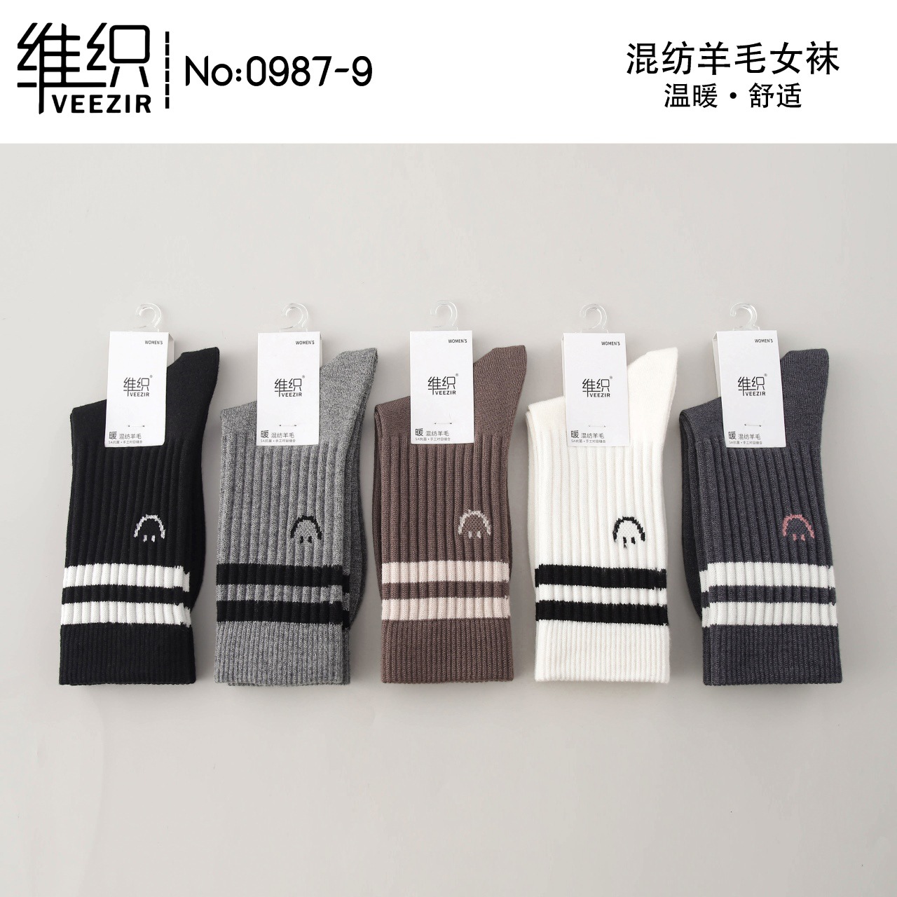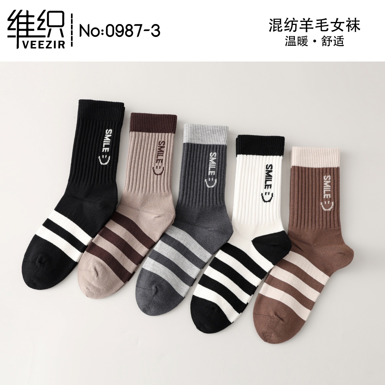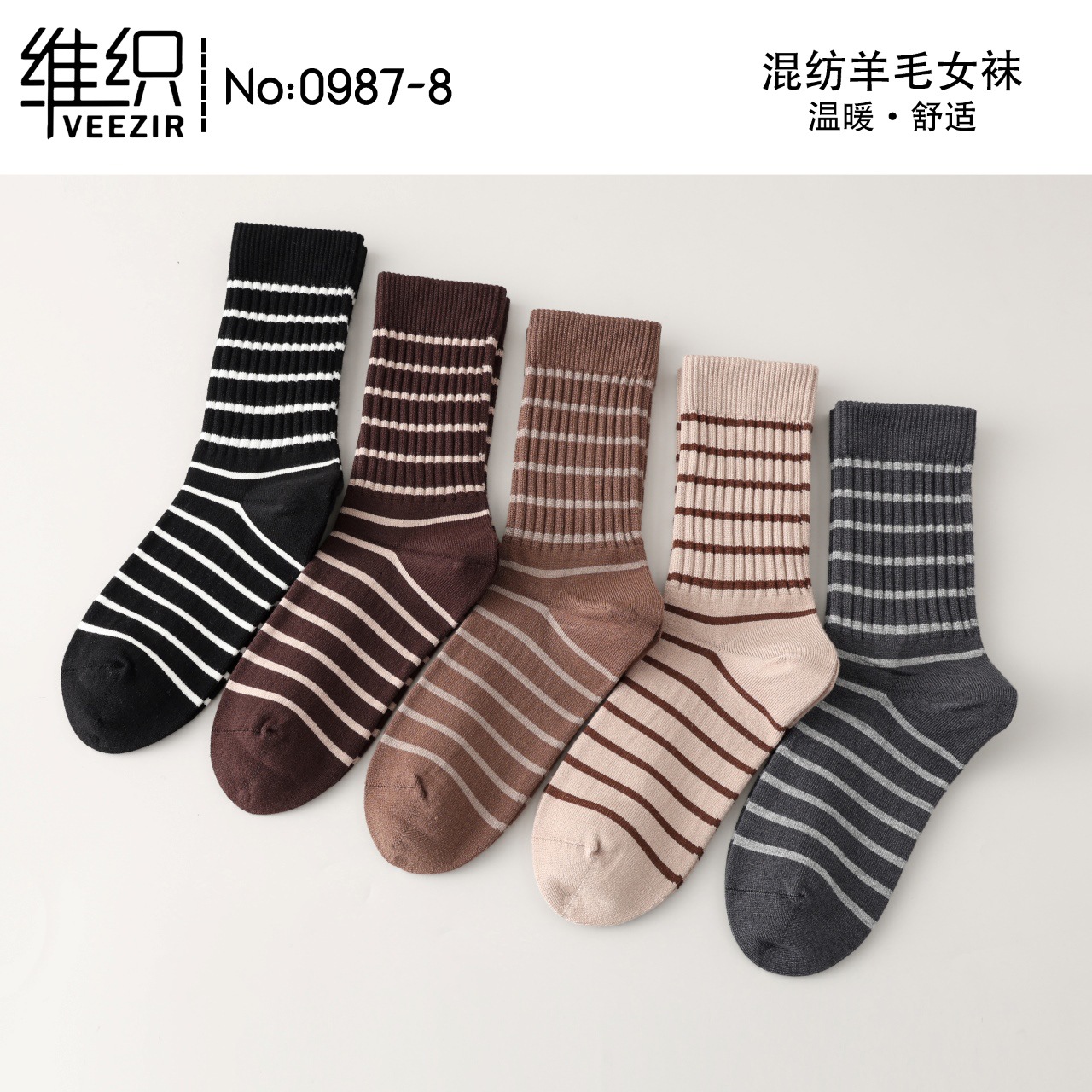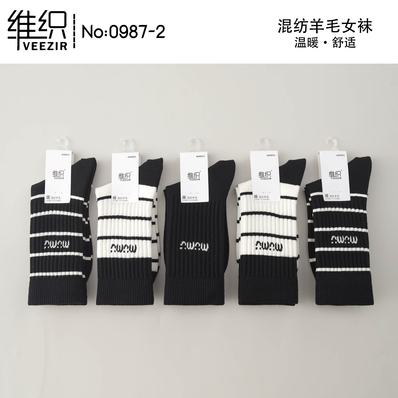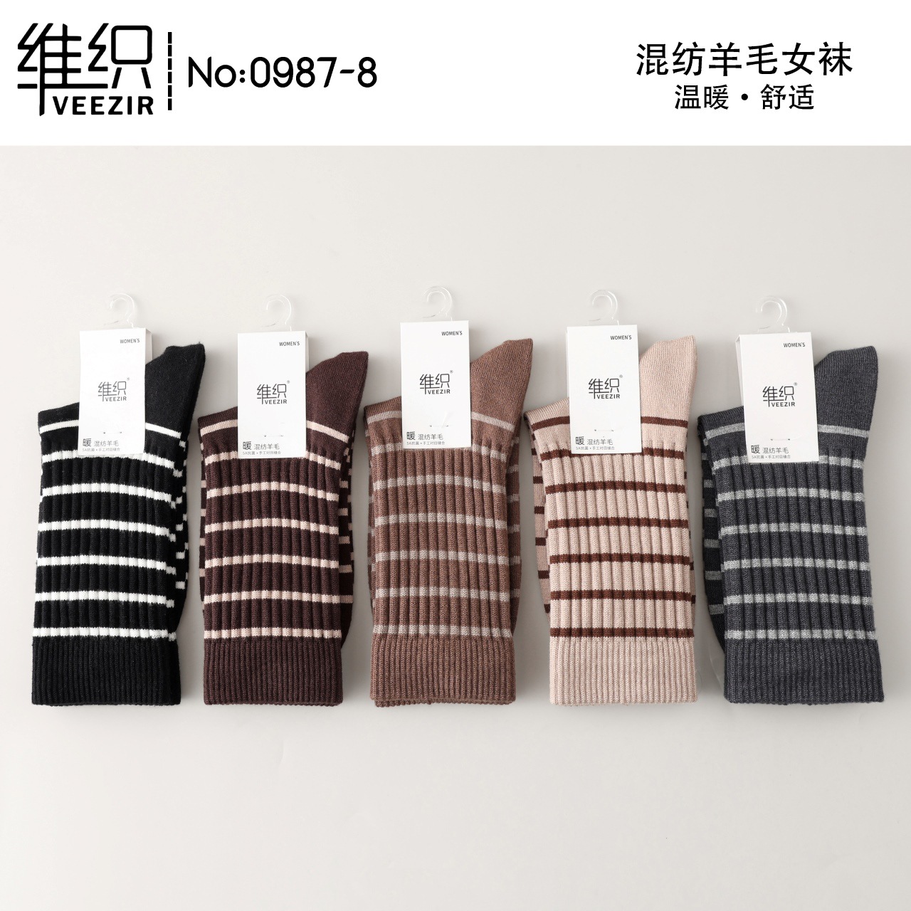 維織0987カシミヤ靴下秋冬の新型厚手保温日韓高筒縞女性ウール靴下卸売り