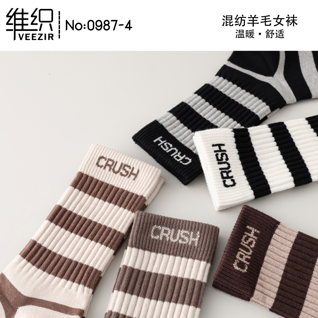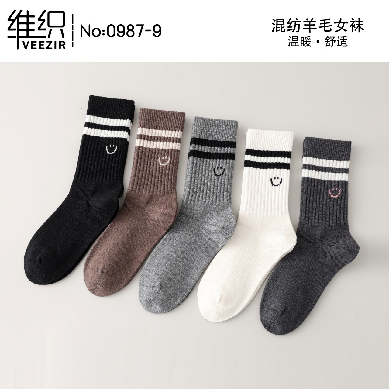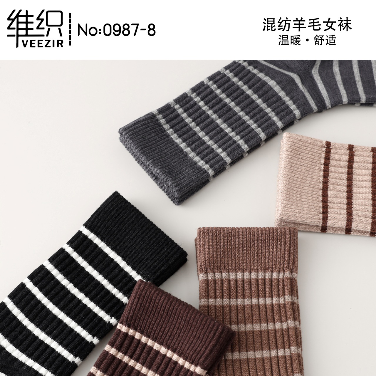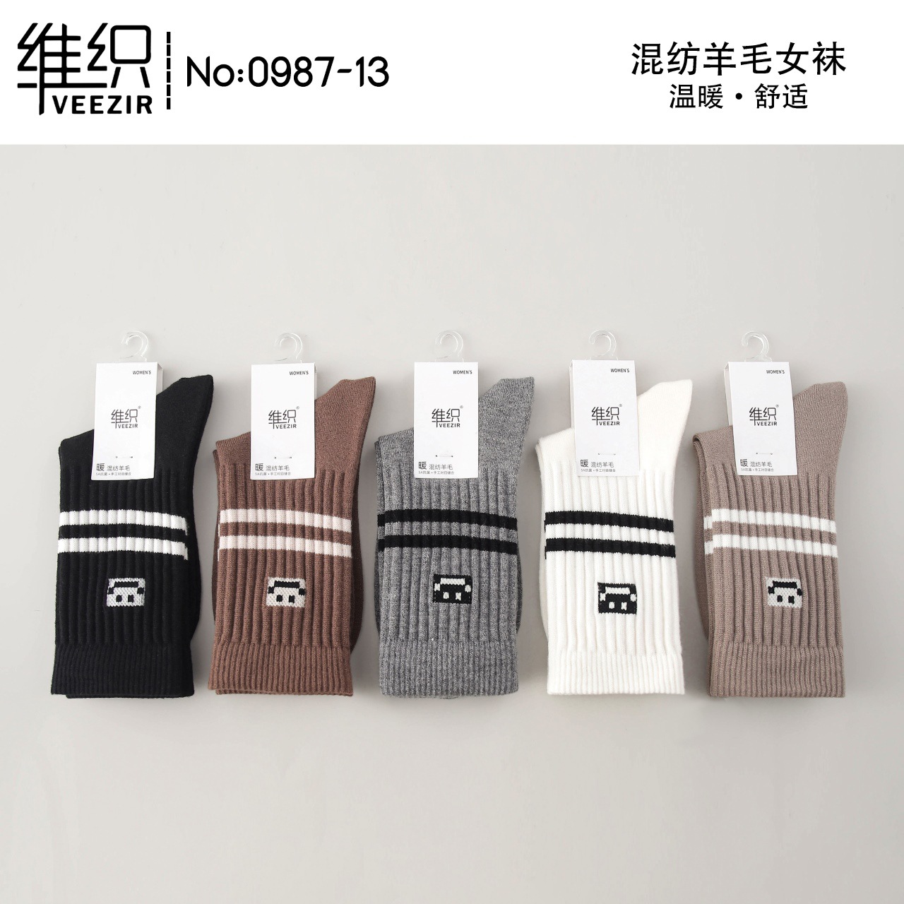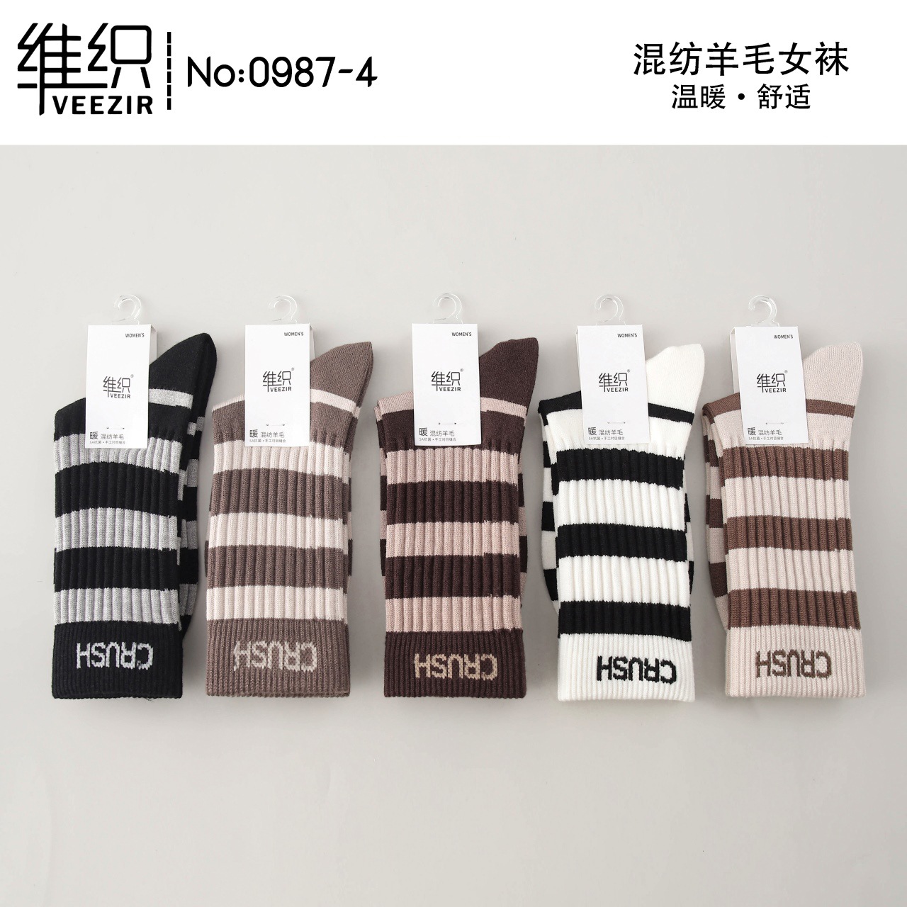 維織0987カシミヤ靴下秋冬の新型厚手保温日韓高筒縞女性ウール靴下卸売り