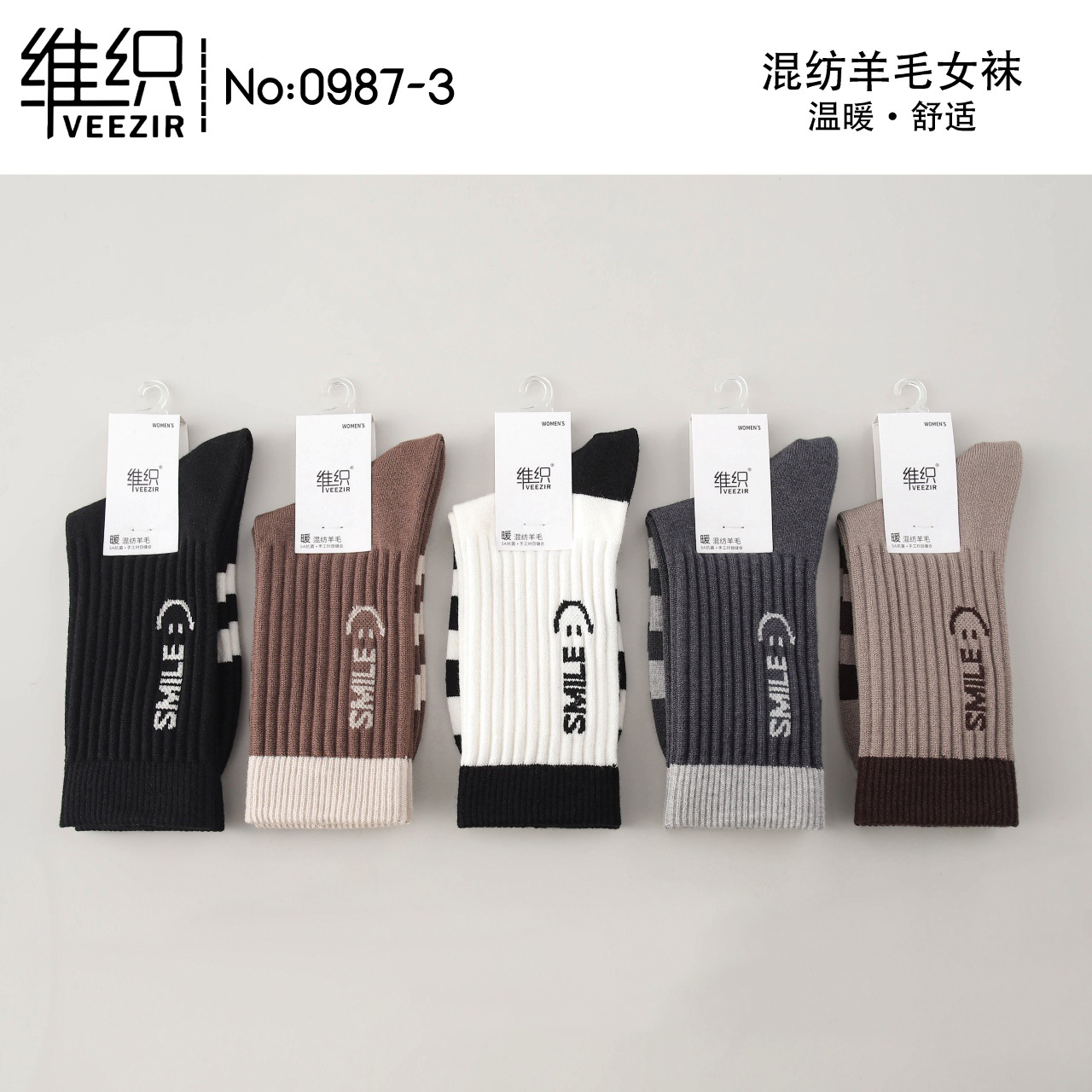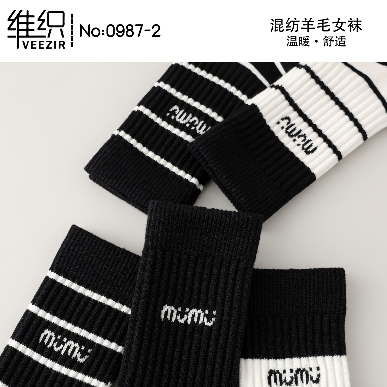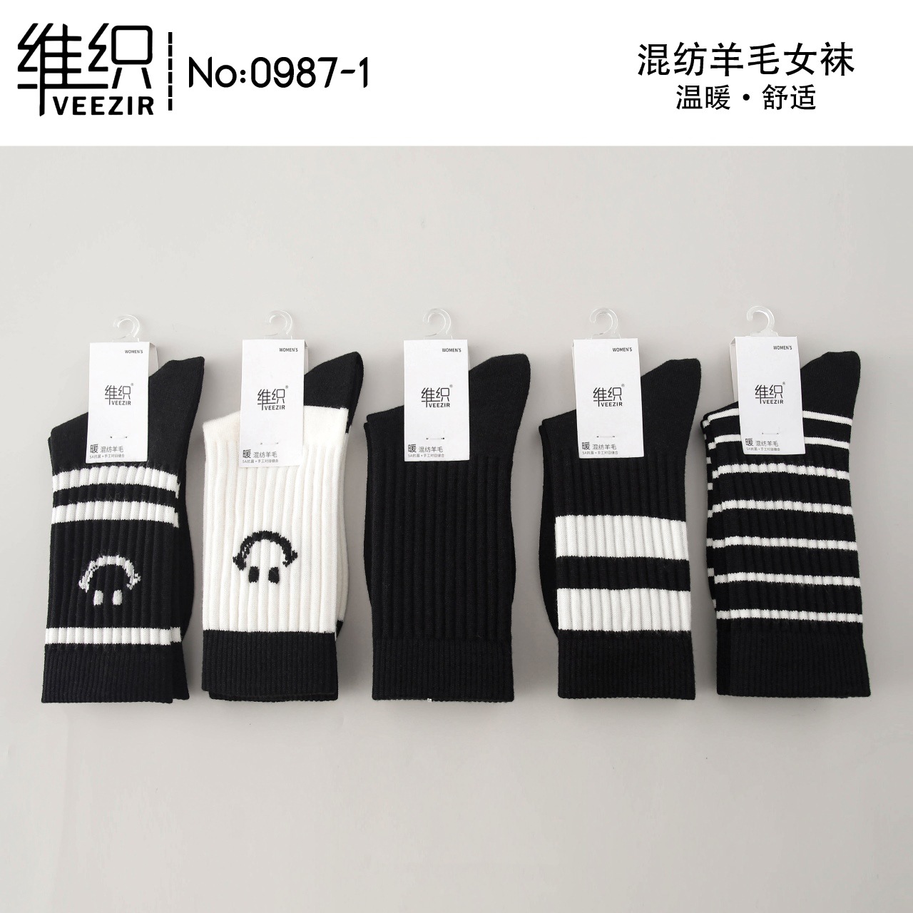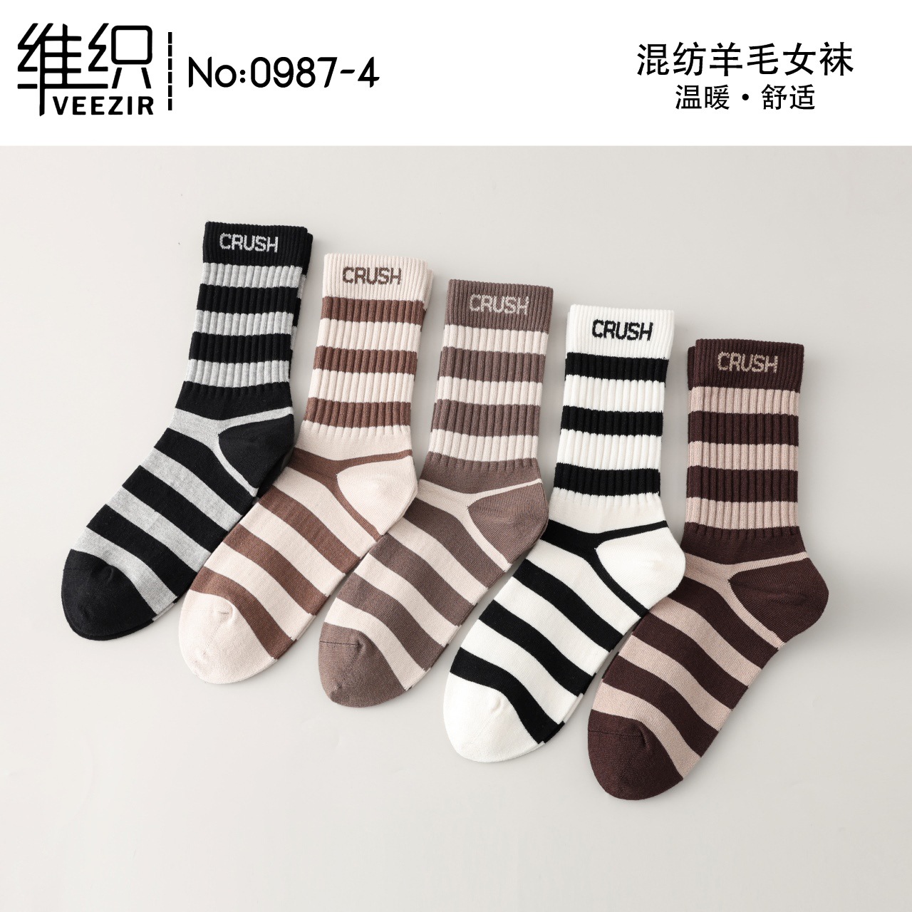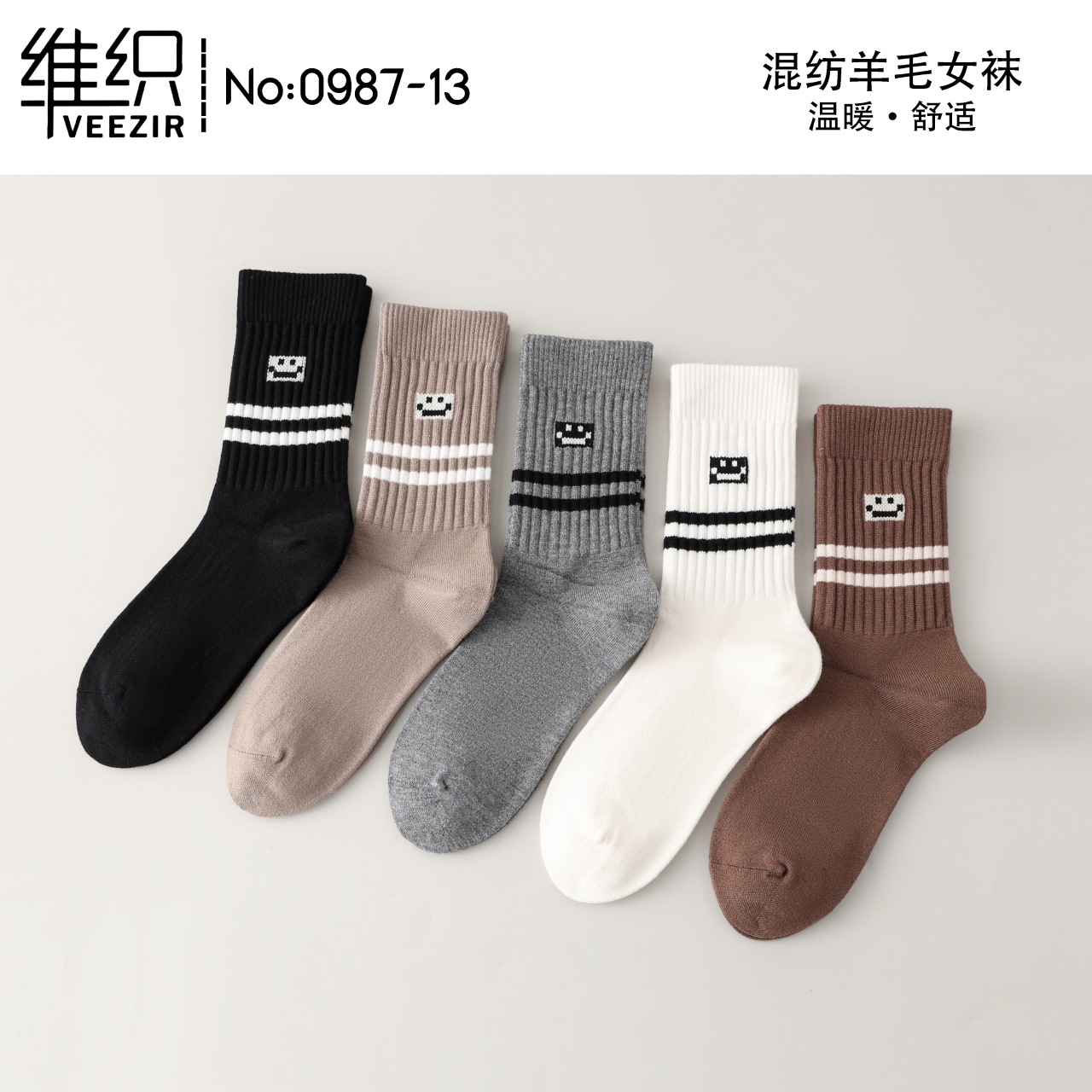 維織0987カシミヤ靴下秋冬の新型厚手保温日韓高筒縞女性ウール靴下卸売り