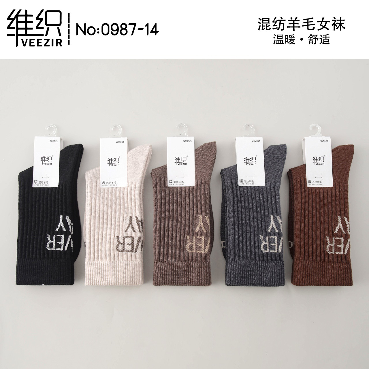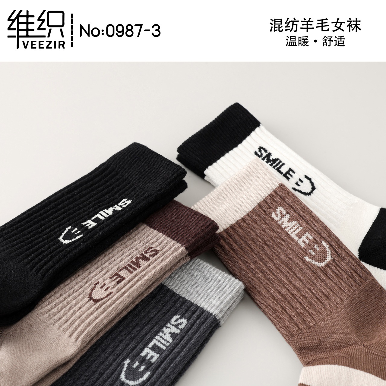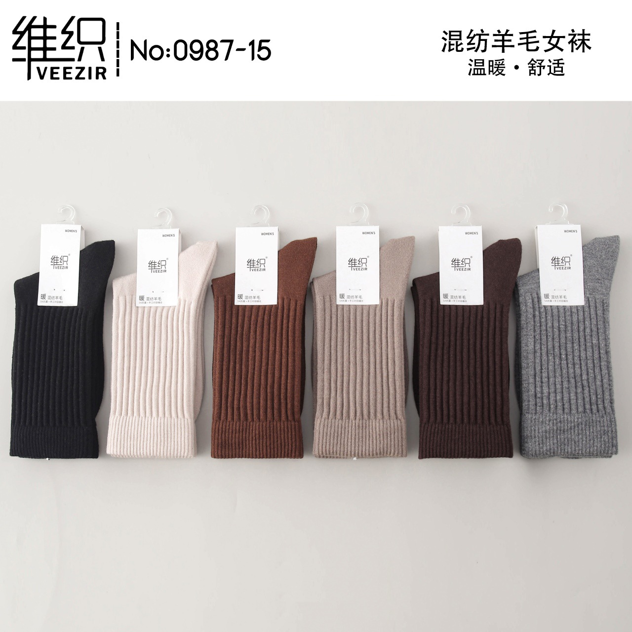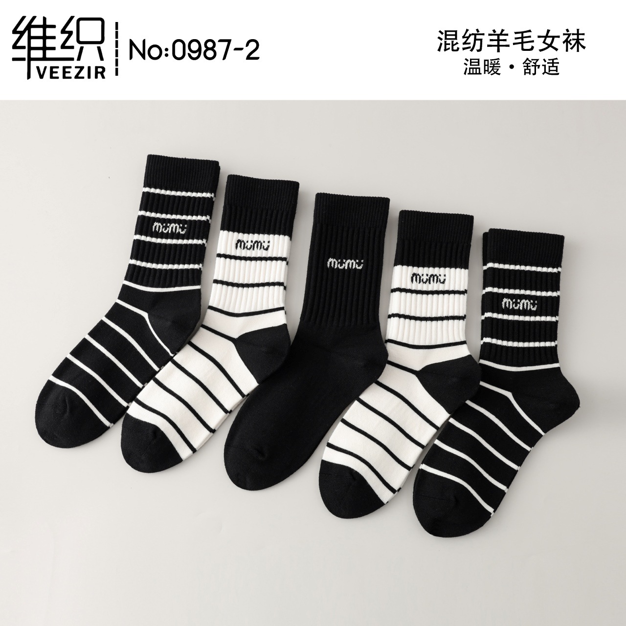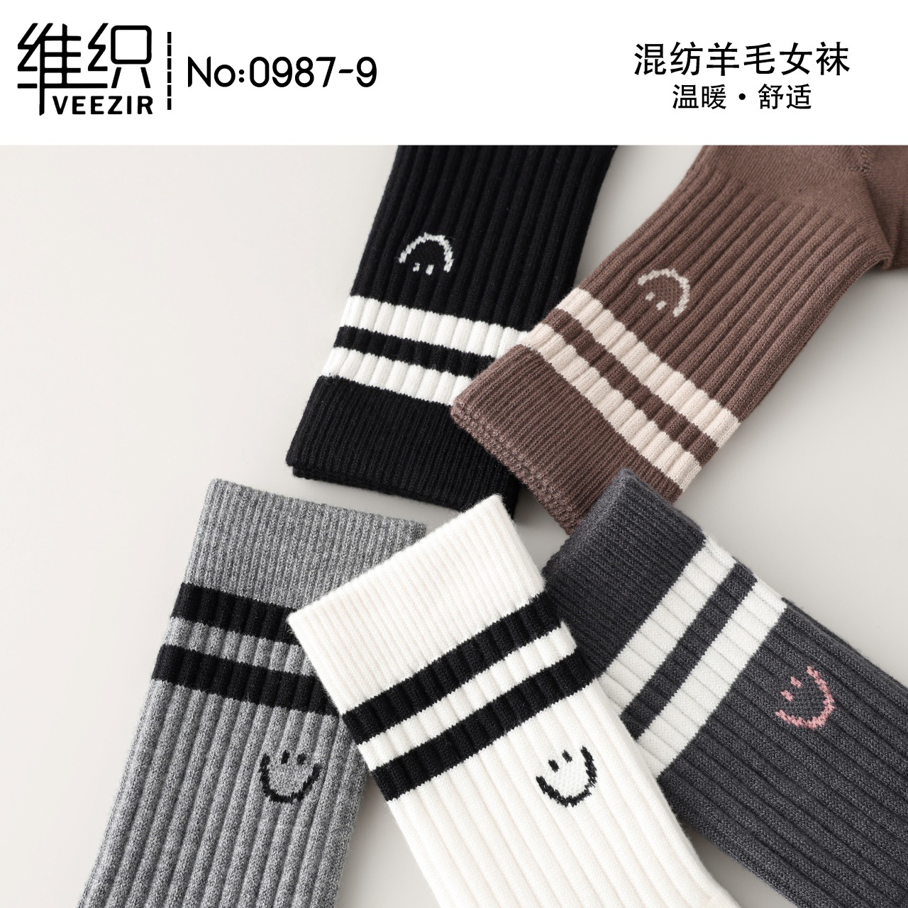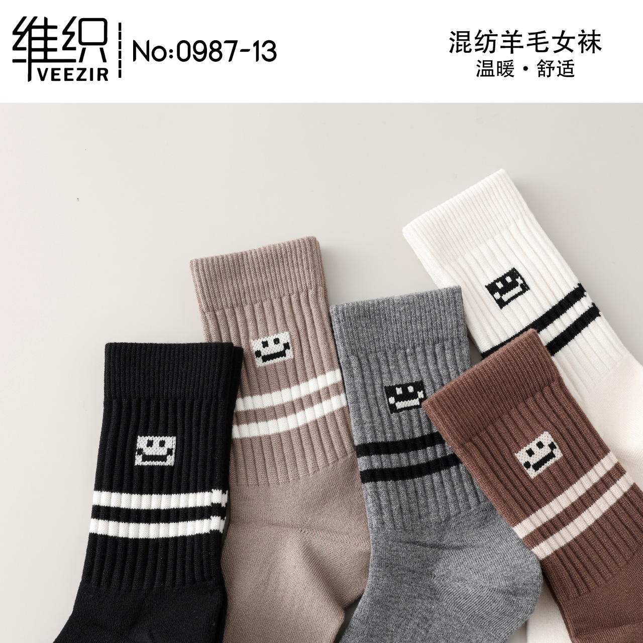 維織0987カシミヤ靴下秋冬の新型厚手保温日韓高筒縞女性ウール靴下卸売り