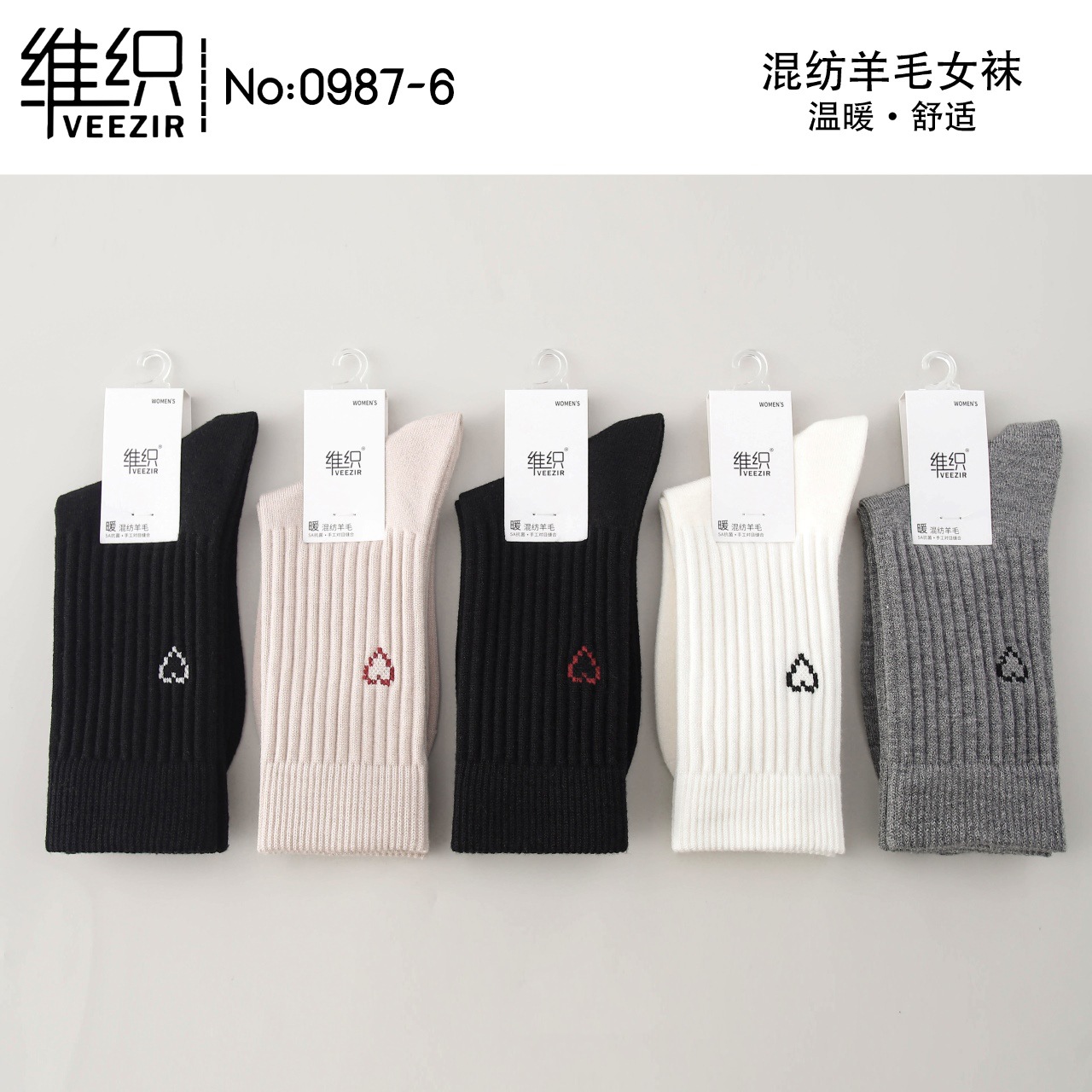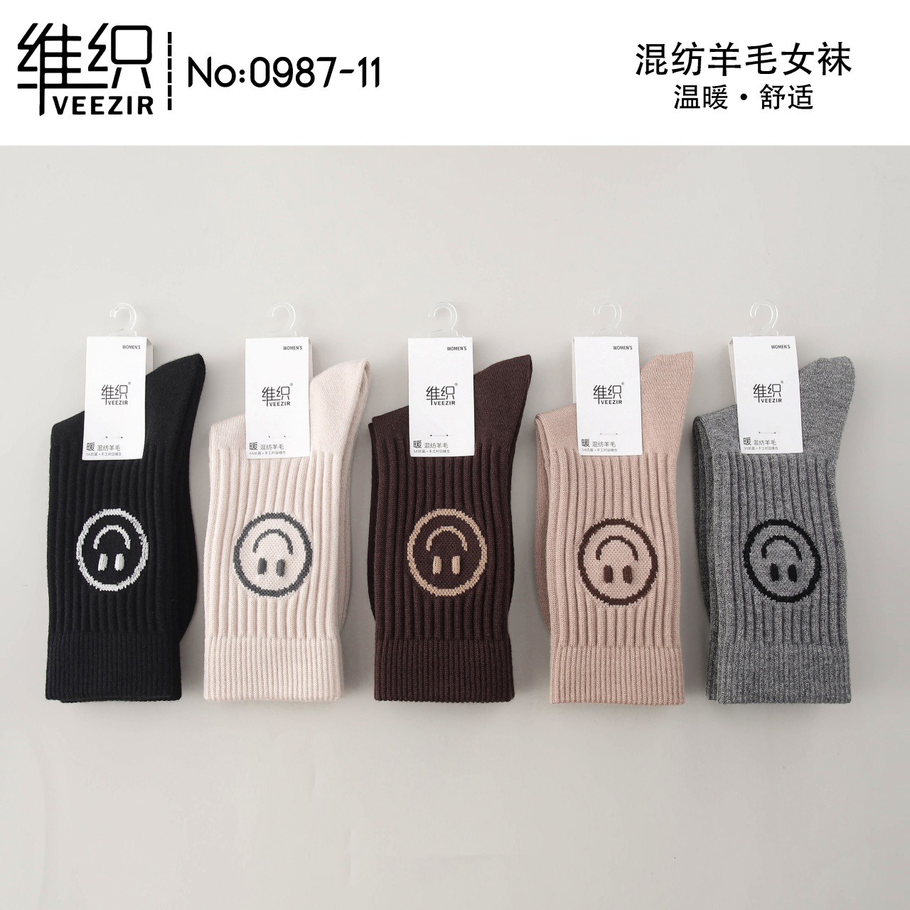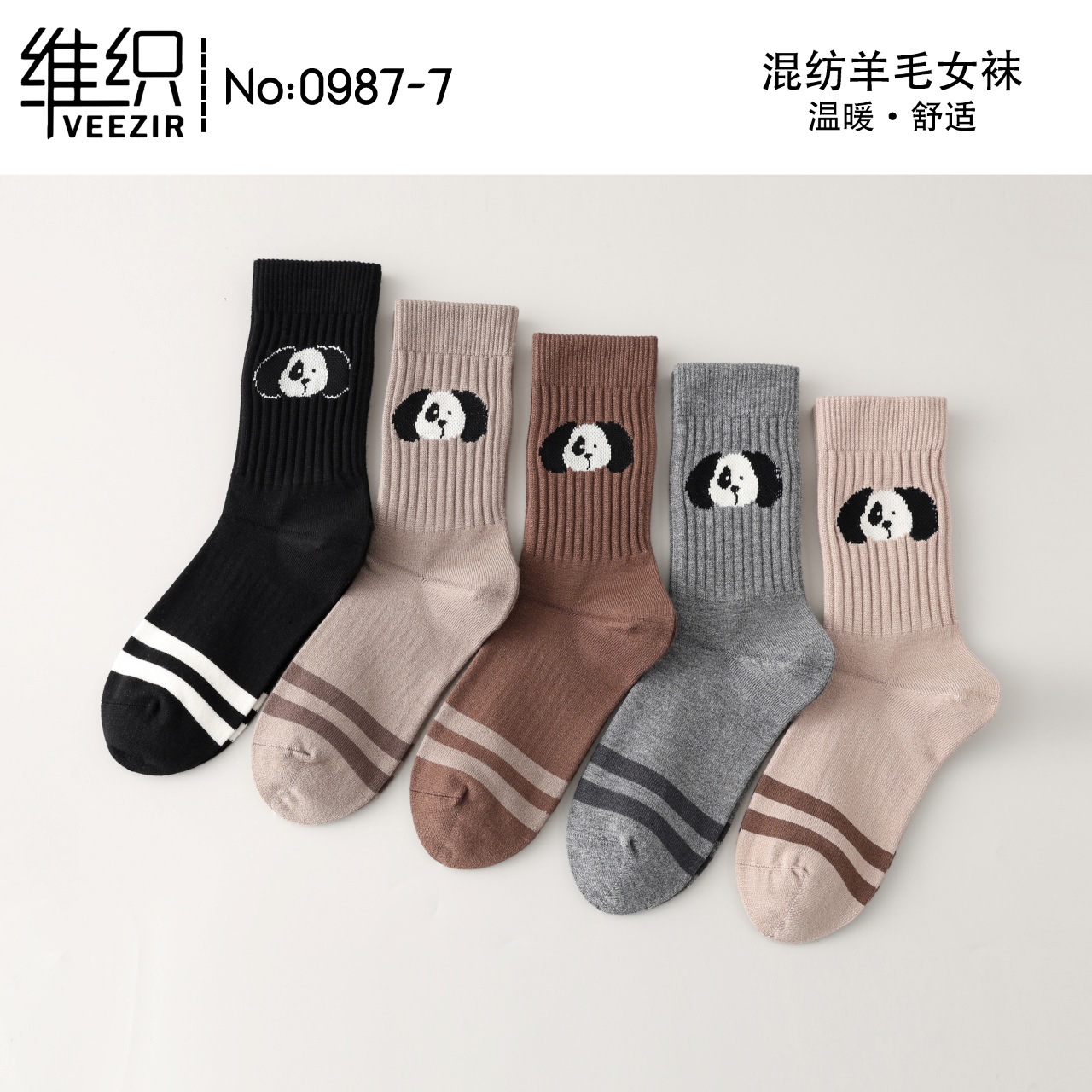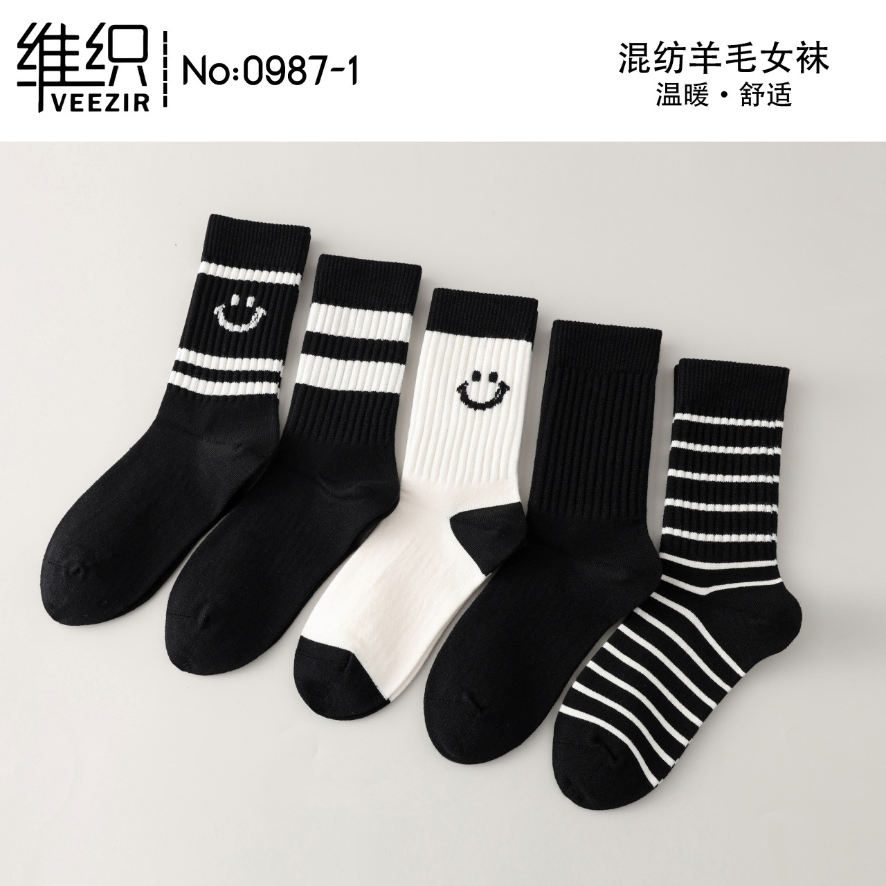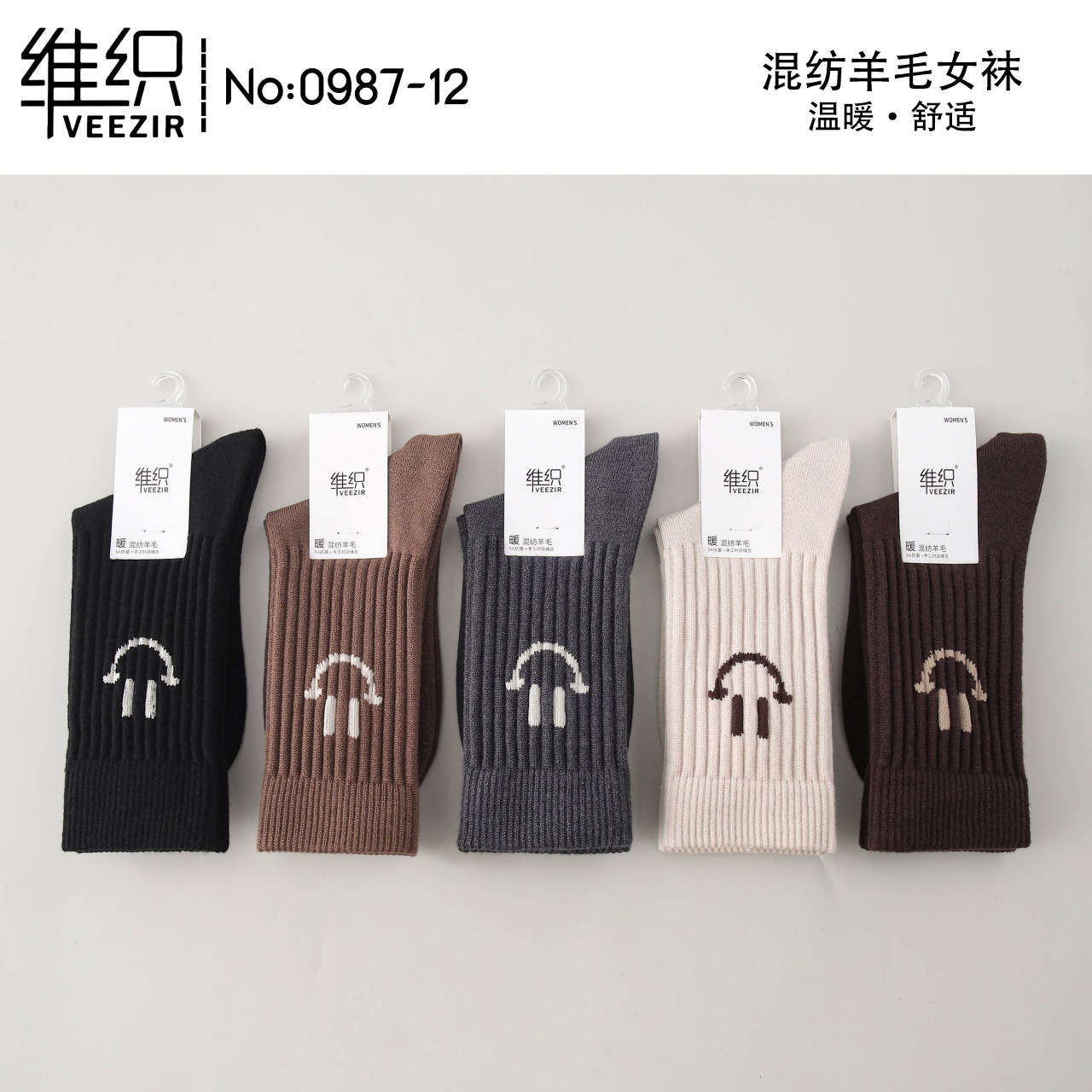 維織0987カシミヤ靴下秋冬の新型厚手保温日韓高筒縞女性ウール靴下卸売り