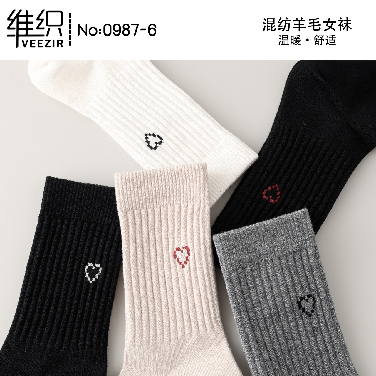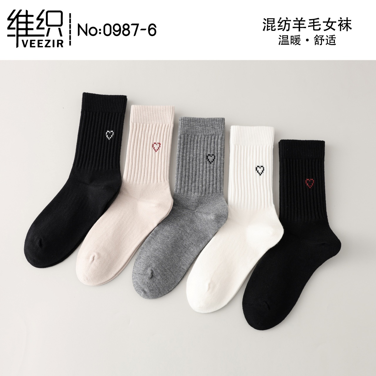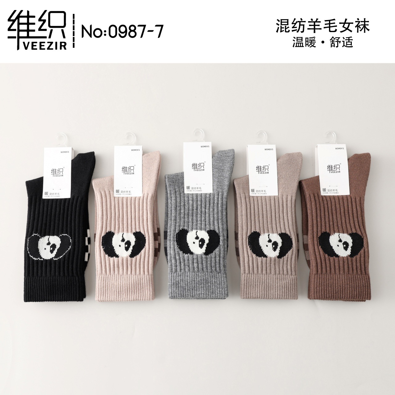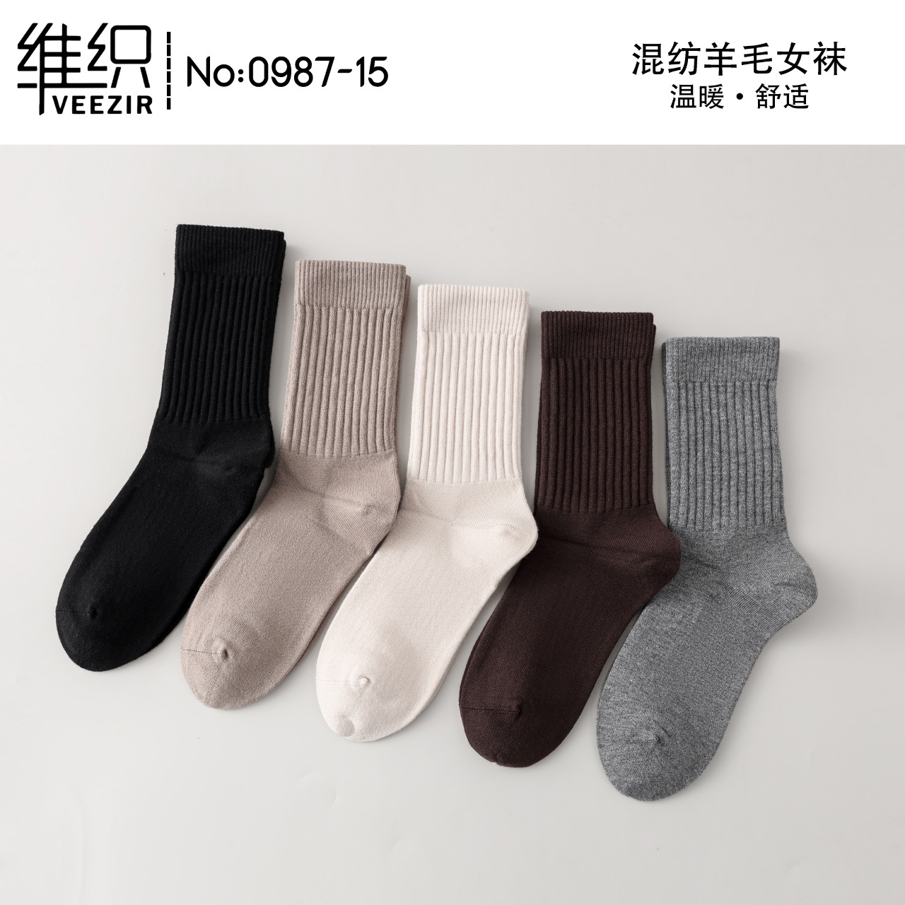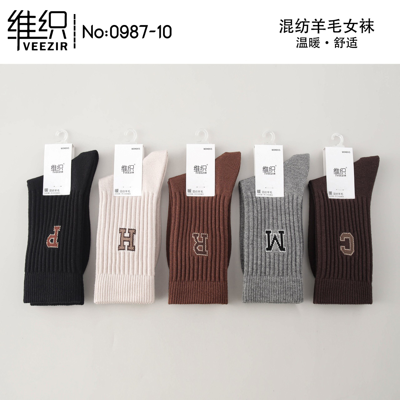 維織0987カシミヤ靴下秋冬の新型厚手保温日韓高筒縞女性ウール靴下卸売り