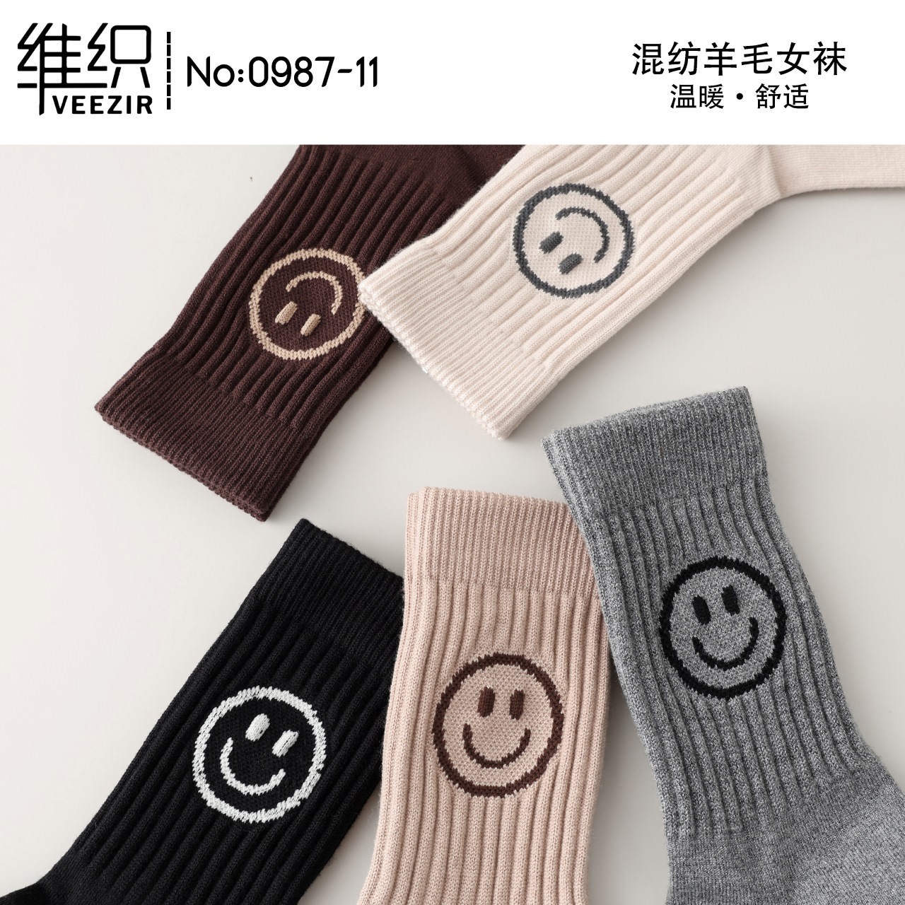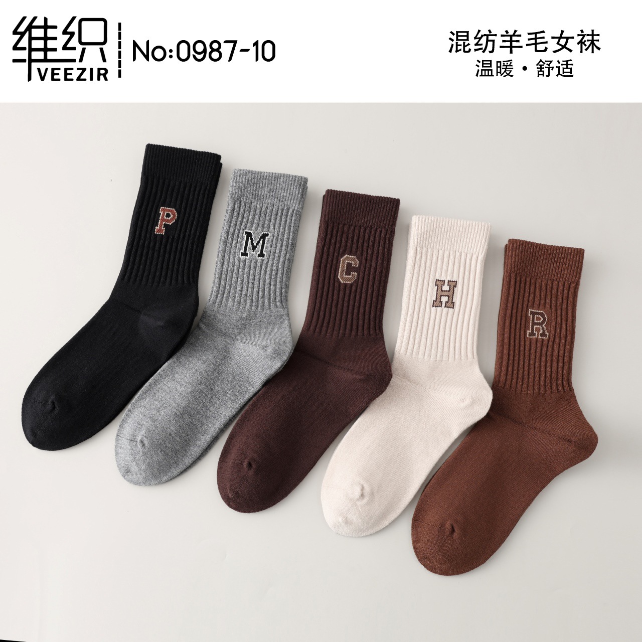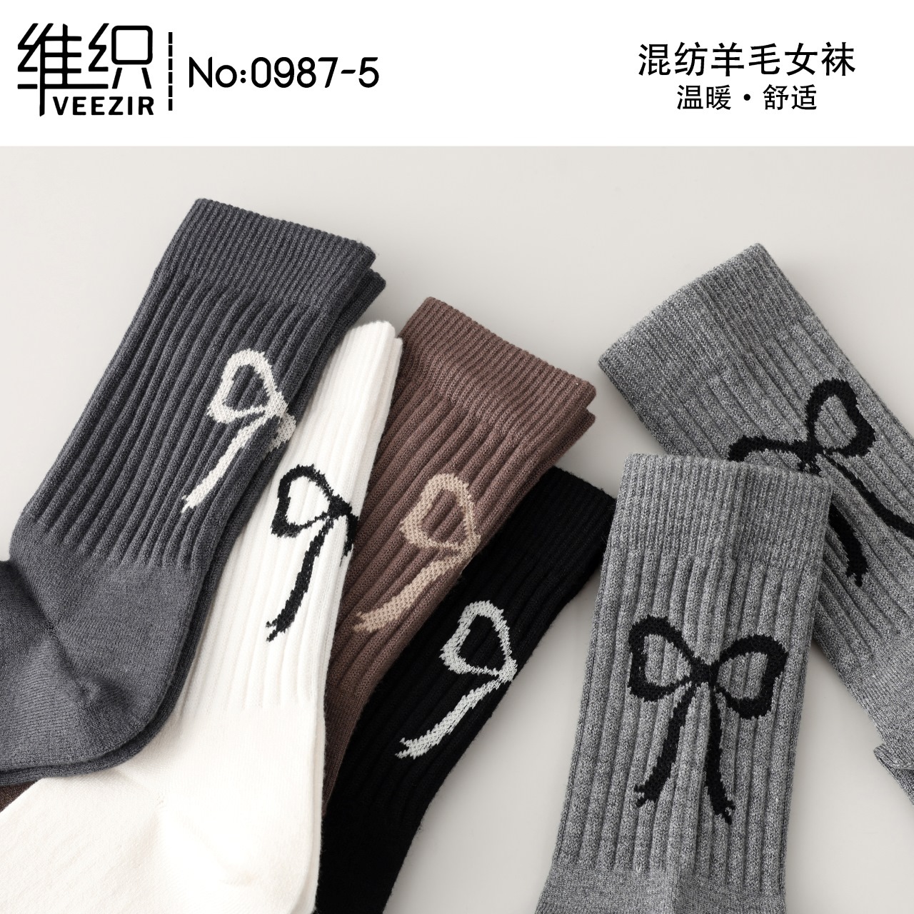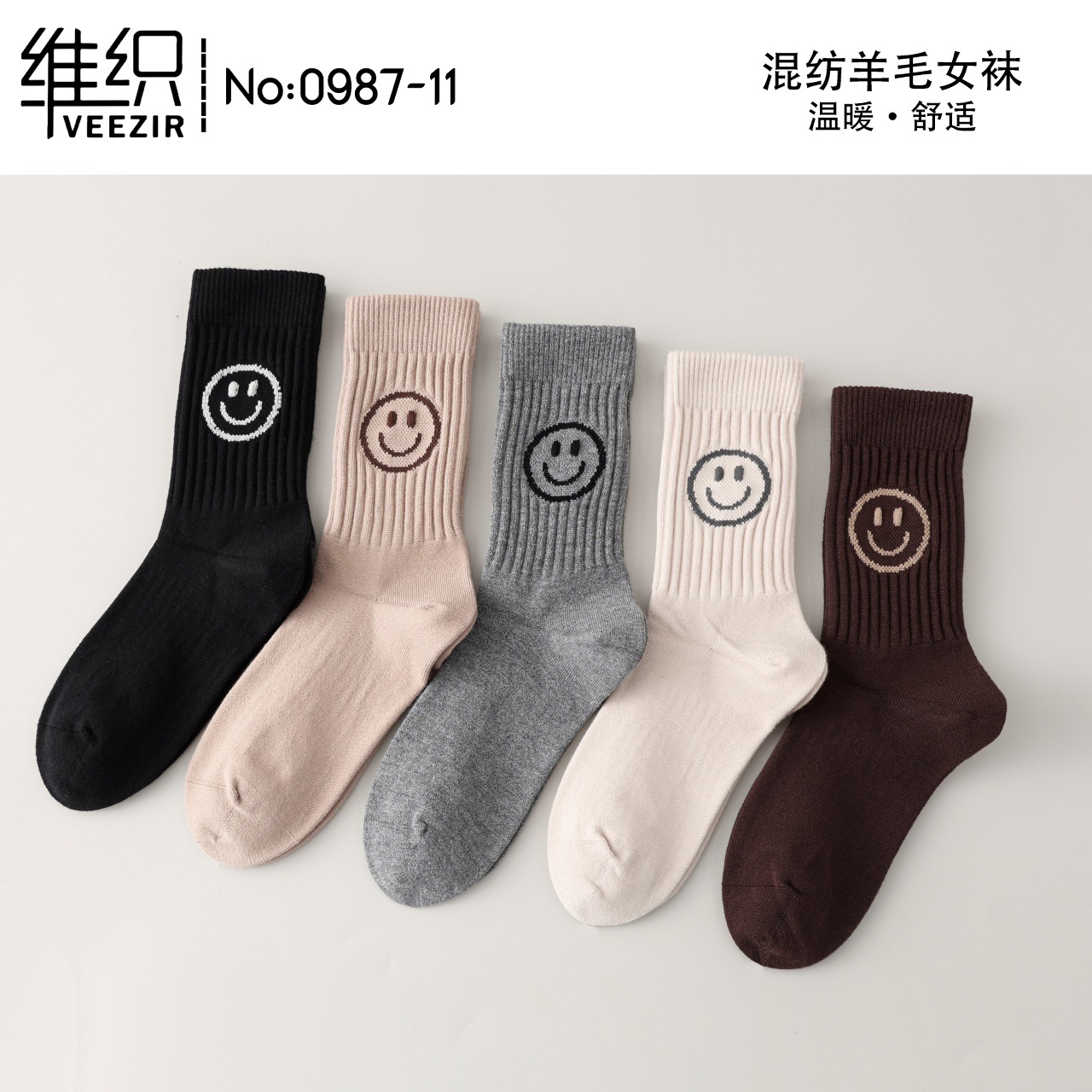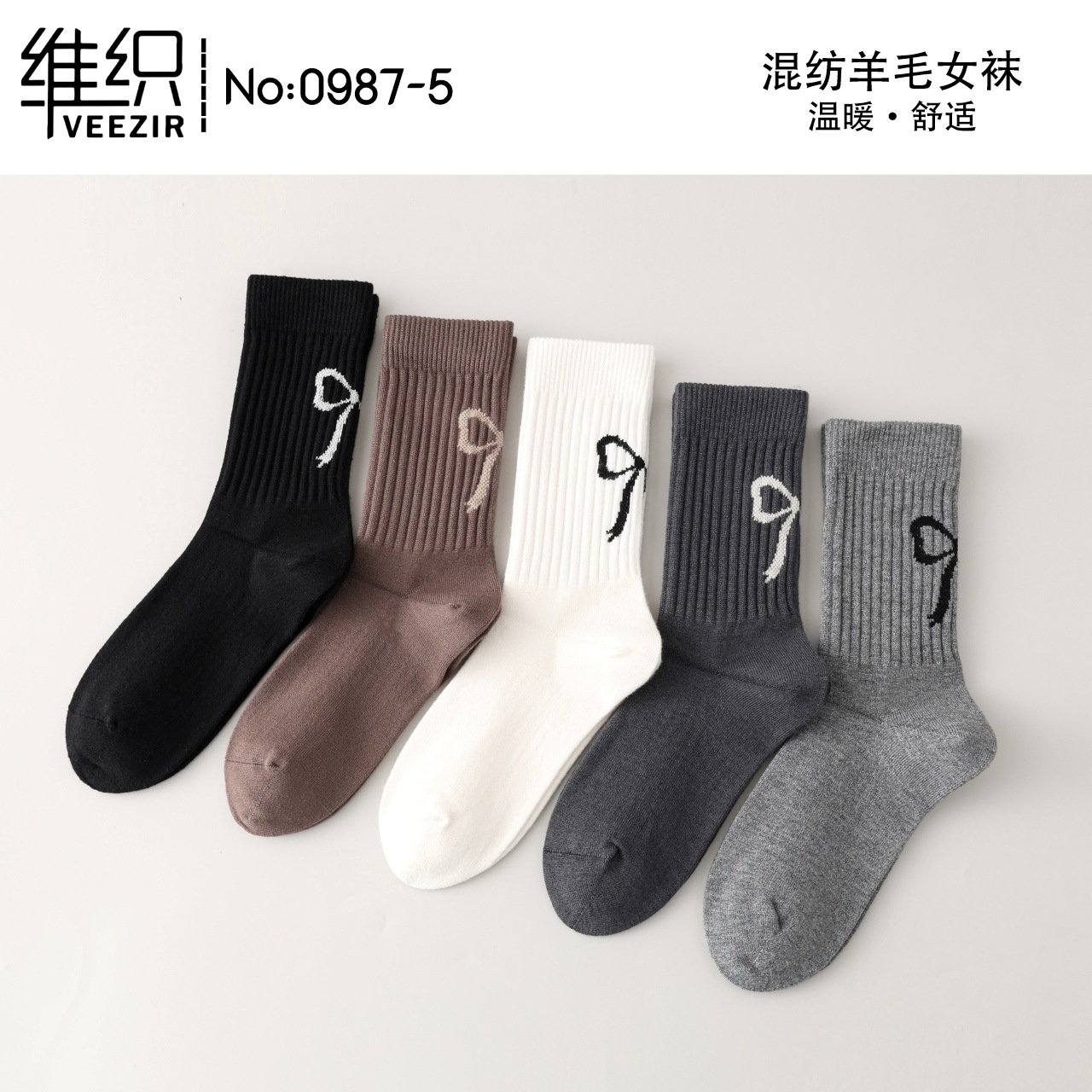 維織0987カシミヤ靴下秋冬の新型厚手保温日韓高筒縞女性ウール靴下卸売り