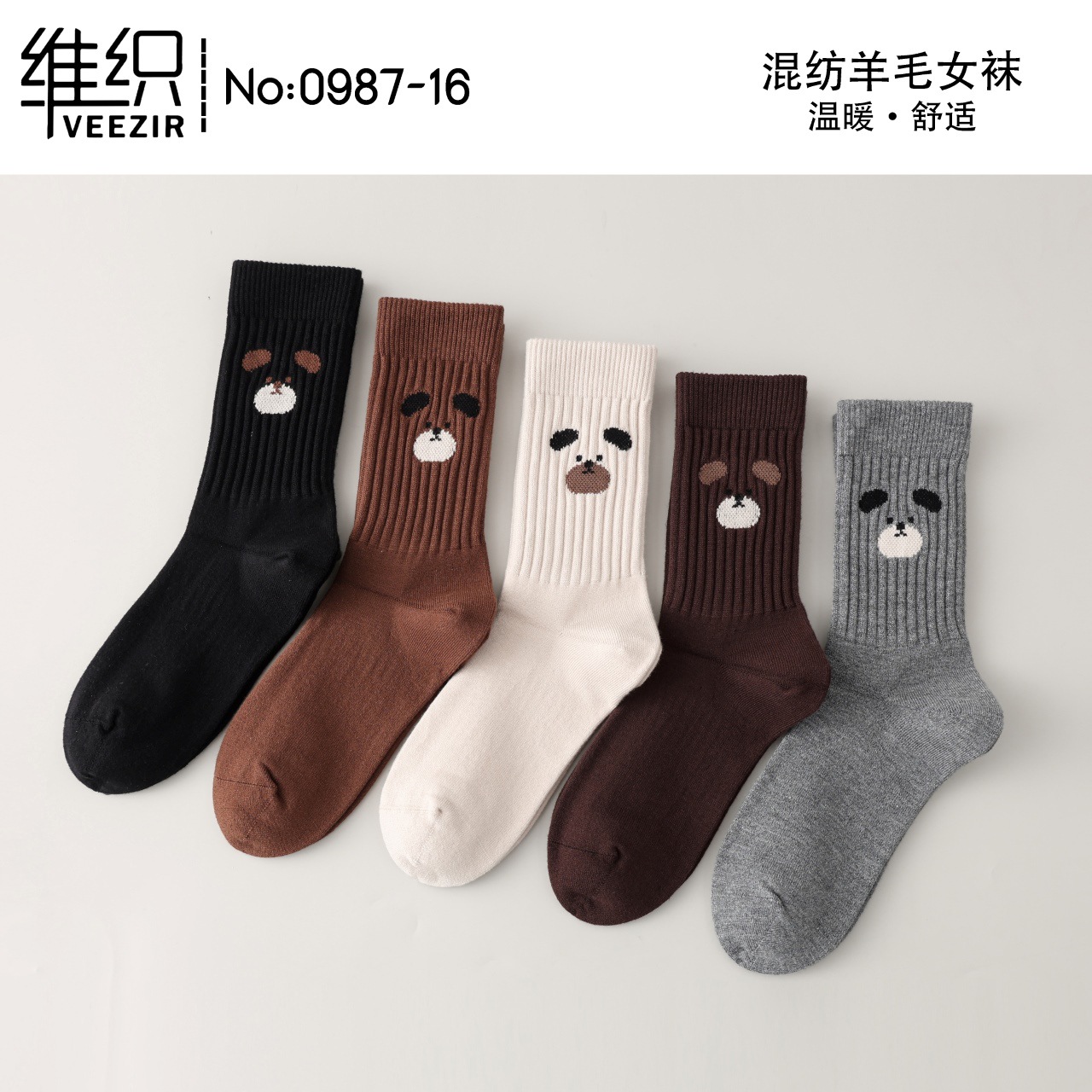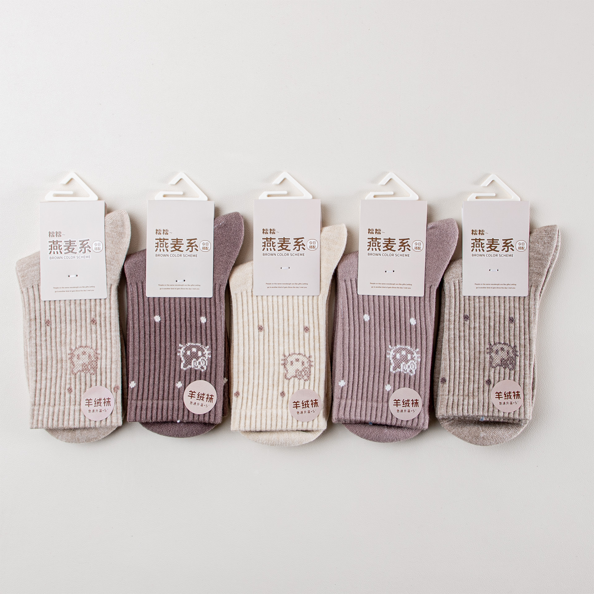 三色猫羊毛袜子女秋冬中筒袜女士冬季加厚保暖地板袜女袜羊绒袜