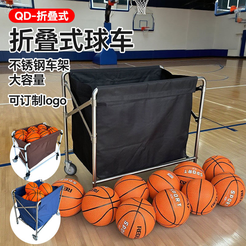 不锈钢球车篮球推车可移动折叠式装球置球框架篮球足球收纳筐