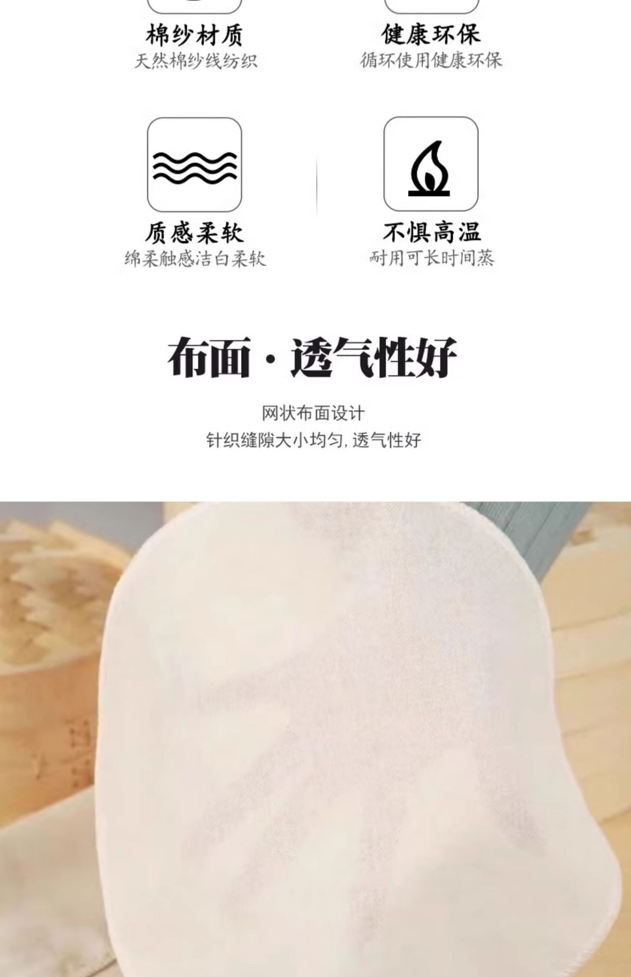 純綿ガーゼノンスティック家庭用蒸し米と野菜蒸し布通気性ガーゼ蒸し米タオル調理ラウンド蒸し器食品グレード
