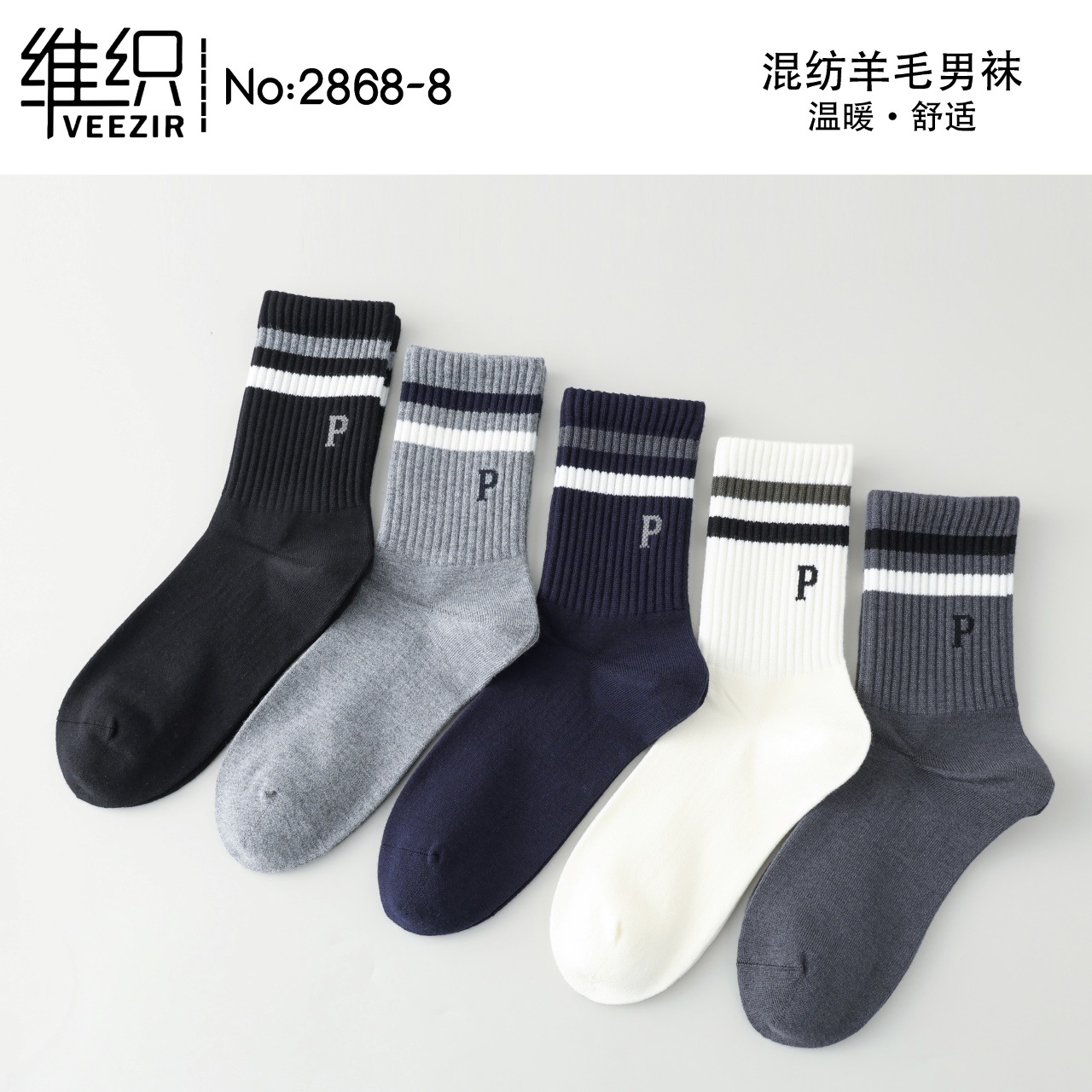 維織秋冬新作双針厚手カシミヤ靴下クラシックストライプ靴下ビジネス純色保温カジュアル男性靴下