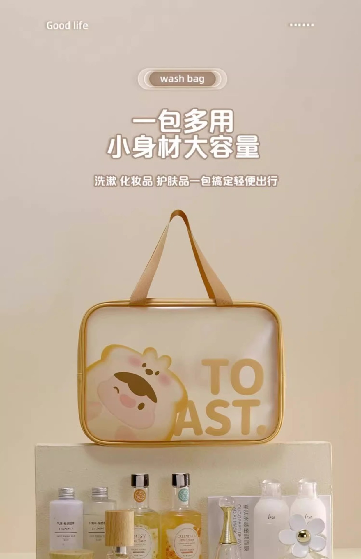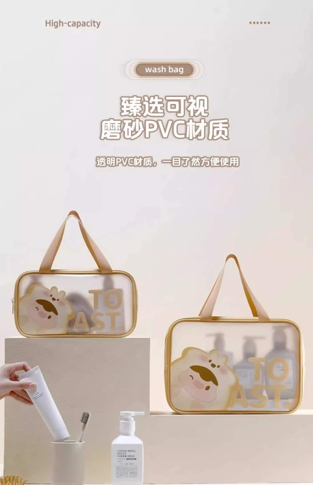 大容量収納バッグ防水高颜値手提げレジ袋スナップ携帯多機能化粧バッグ洗面バッグ