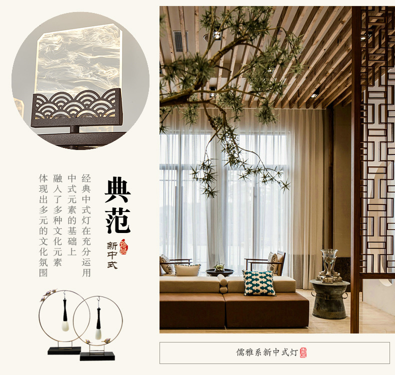 新中国風客間灯中国風古典別荘複式楼レストラン寝室書斎LED大気シャンデリア照明