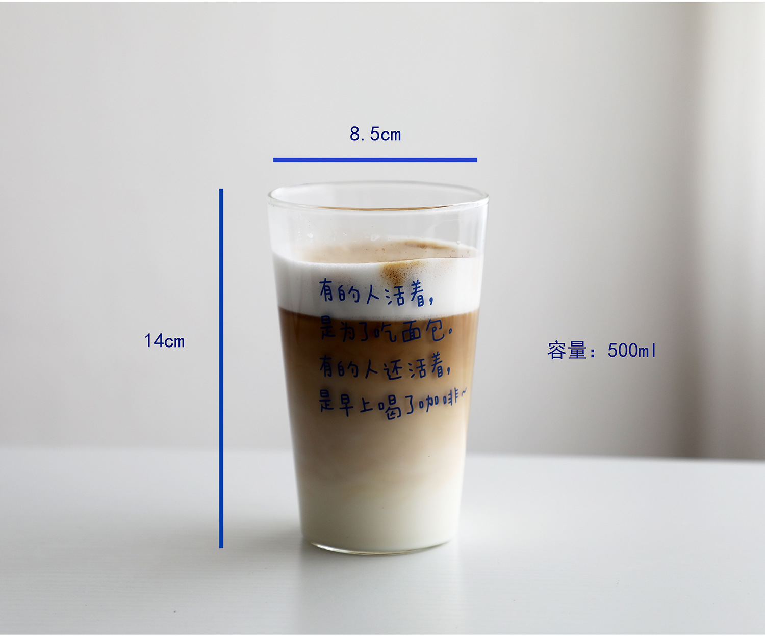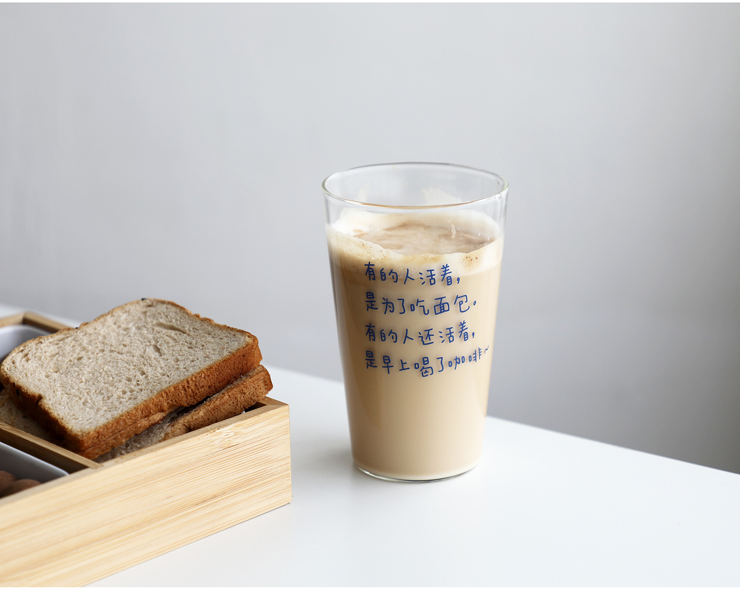 ブルーワードコーヒーカップ高ホウ素シリコンガラス水カップ大容量カップ家庭用牛乳カップクリエイティブグラス