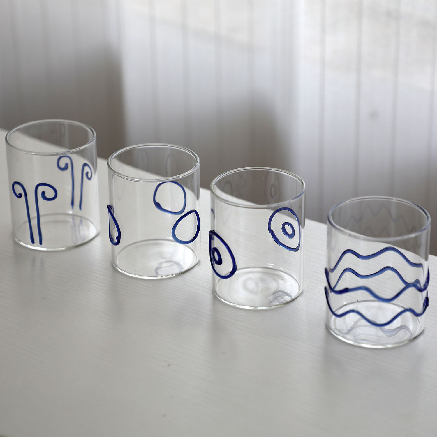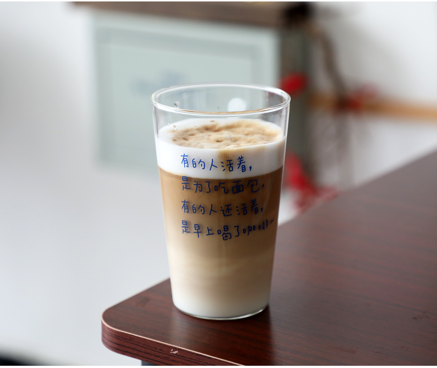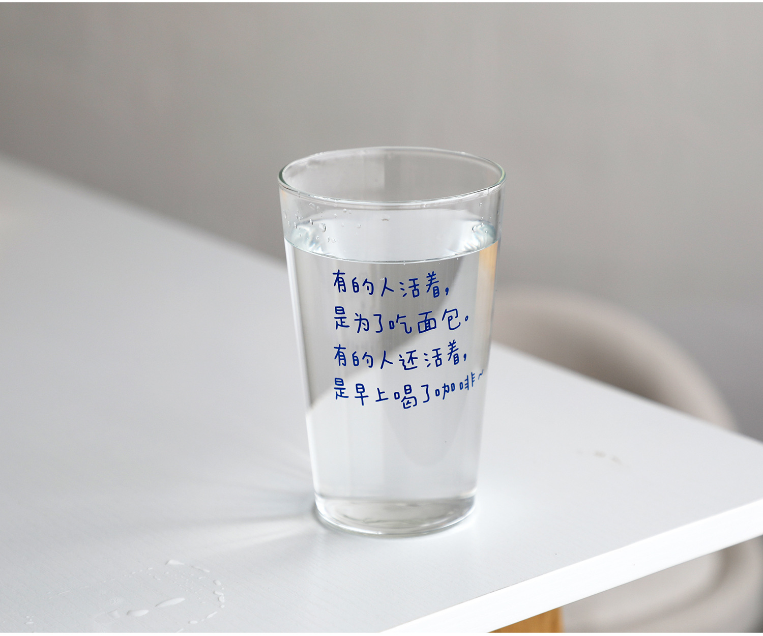 法国设计手绘图案玻璃杯ins风高硼硅玻璃果汁杯咖啡杯冷饮杯