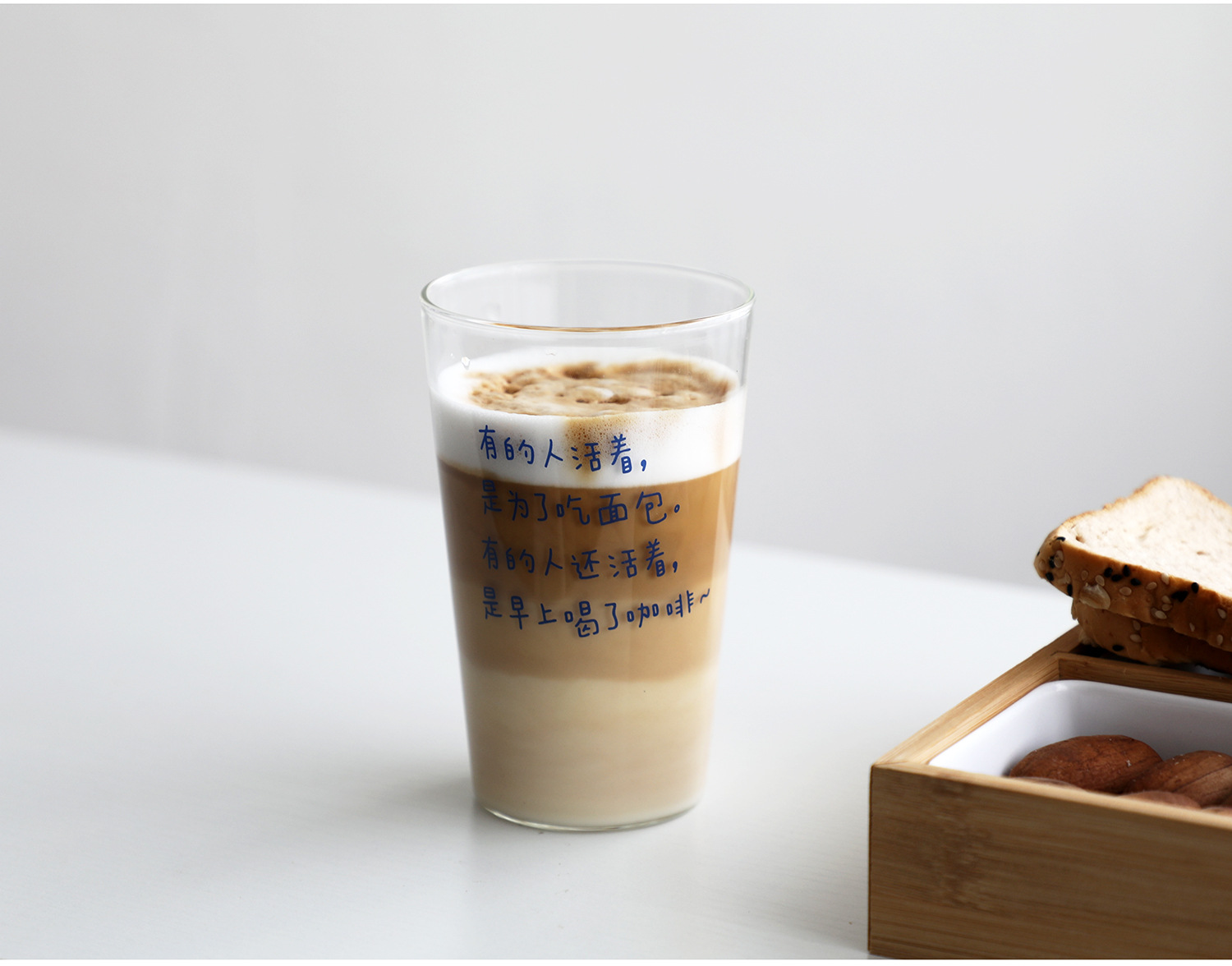朝八文字コーヒーグラス400ミリリットル大容量カップアメリカラテミルクジュースカップ