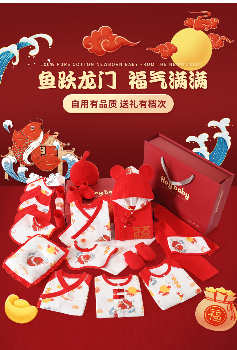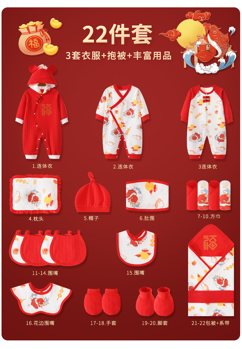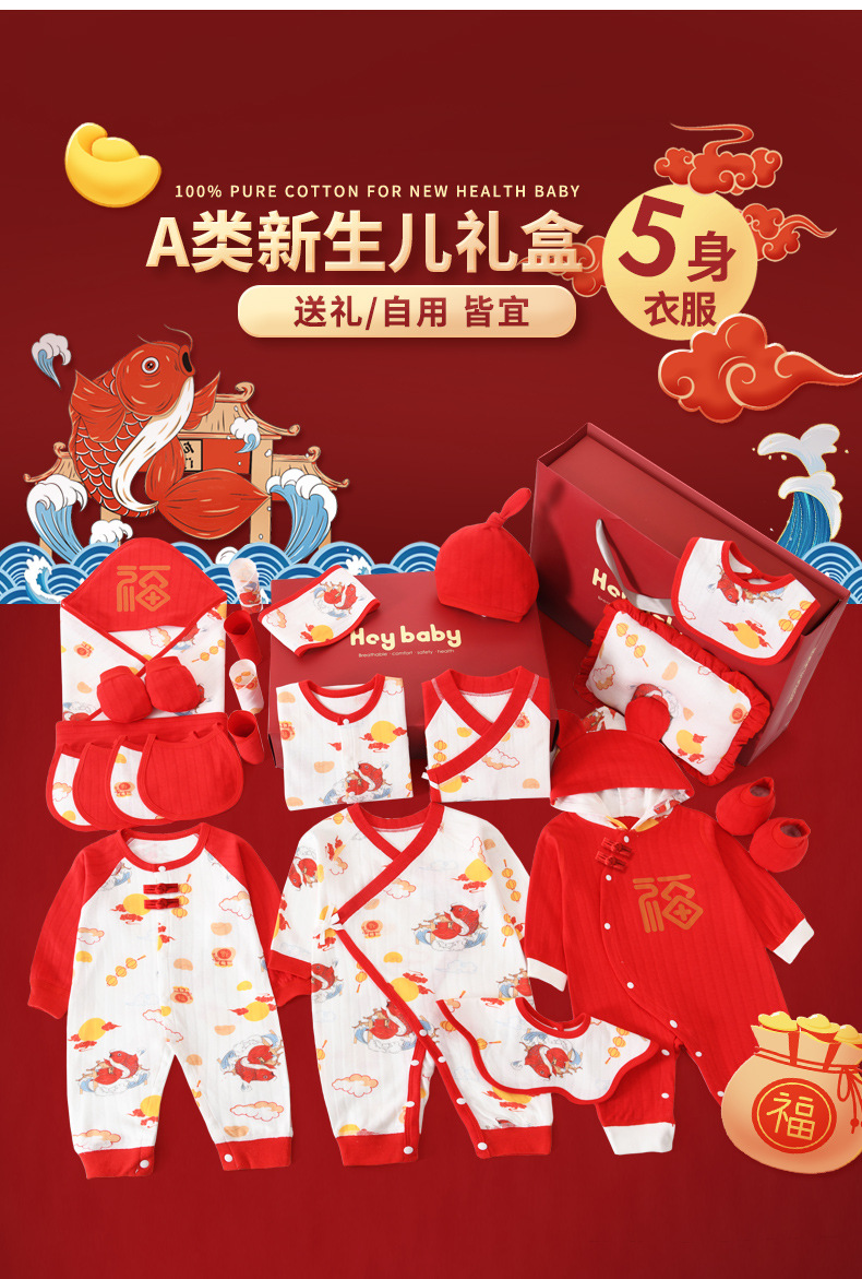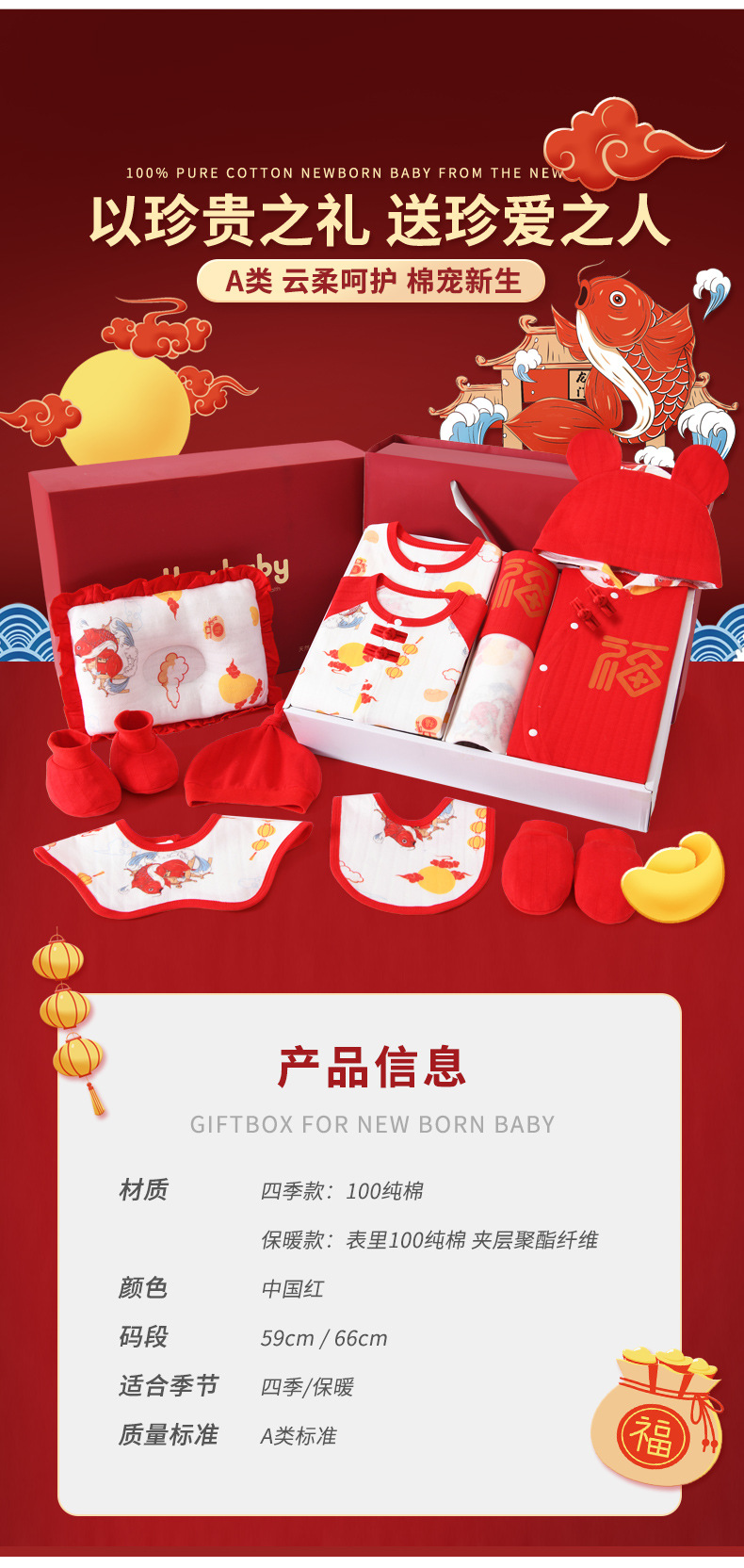 蛇年赤ちゃんギフトボックスセット新生児服純綿秋冬ネット赤スーツケースセット生まれたばかりの赤ちゃん