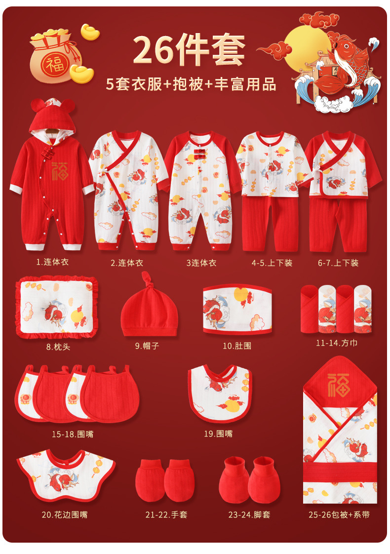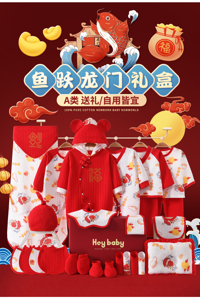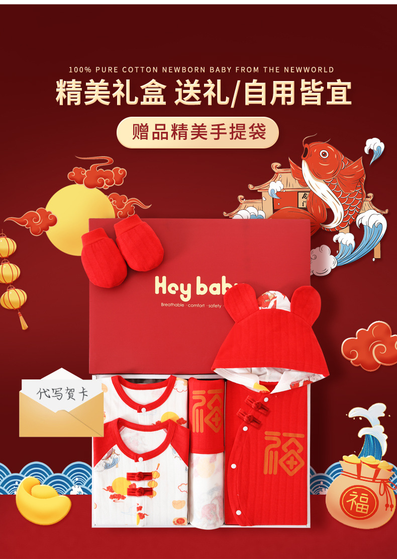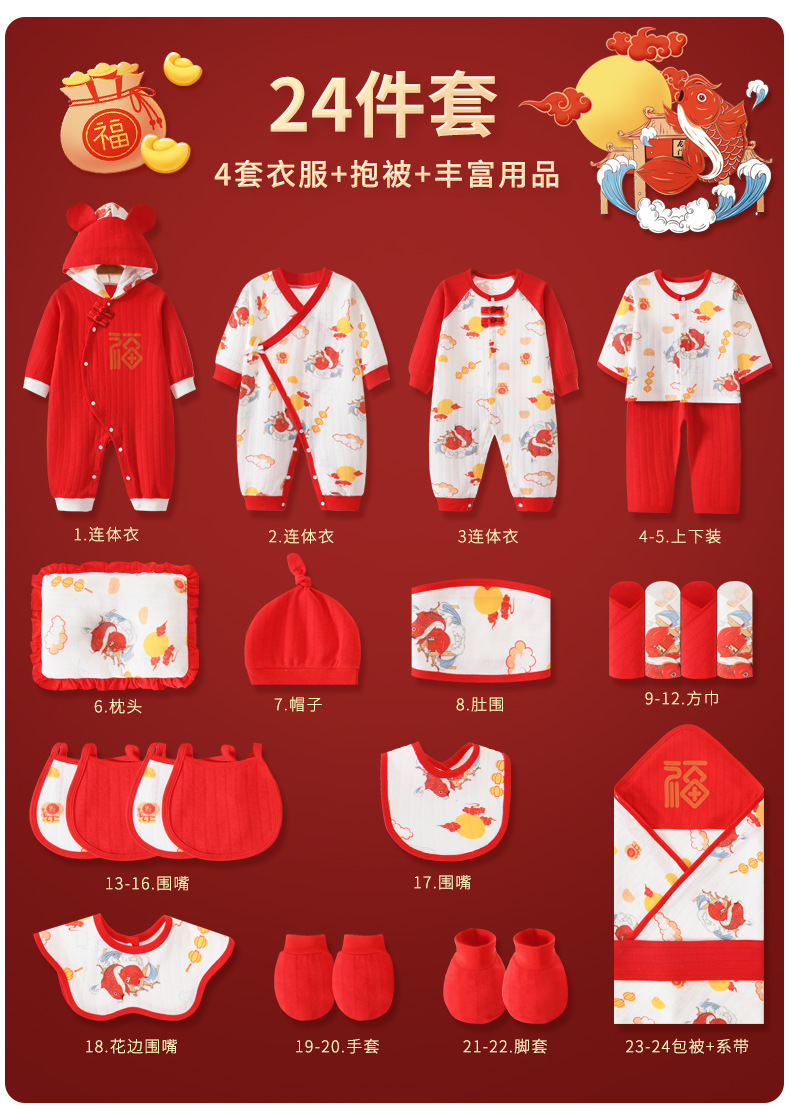 蛇年赤ちゃんギフトボックスセット新生児服純綿秋冬ネット赤スーツケースセット生まれたばかりの赤ちゃん