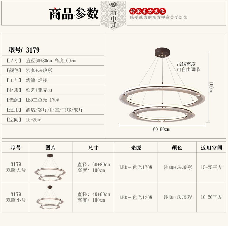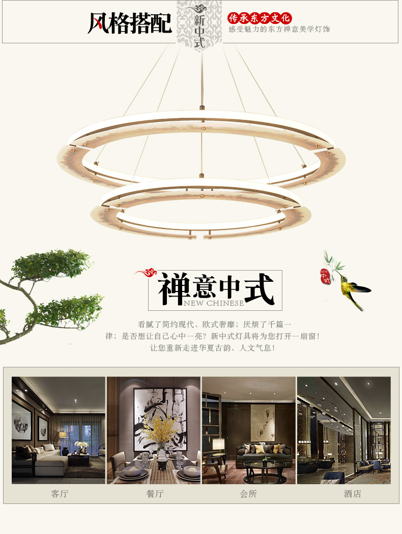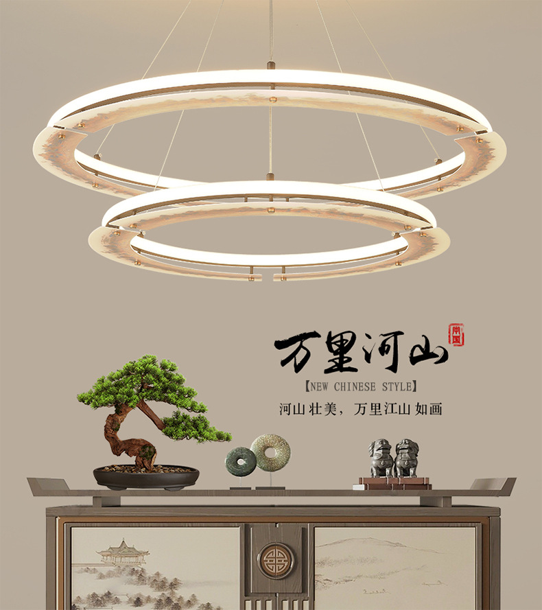 リビングライト中国式シャンデリア多頭現代シンプルなダイニングライト軽贅沢リビング円形創意LED新型シャンデリア