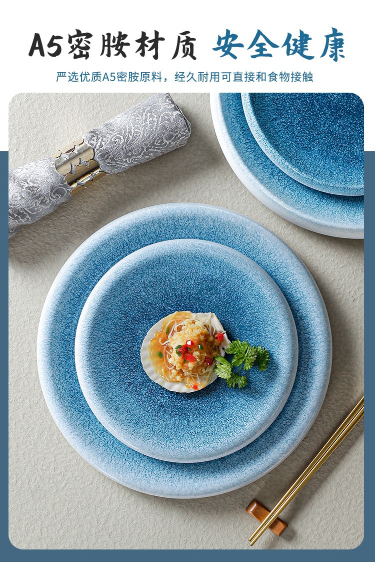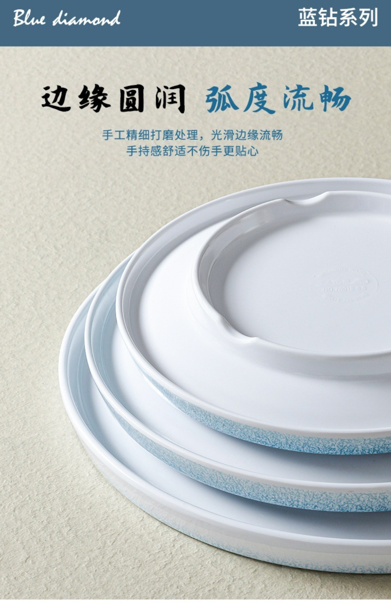 メラミン食器の皿の円形の業務用レストランのホテルの炒め物は磁器の食事の皿の鍋の料理の皿の軽食の前菜の円盤をまねます。