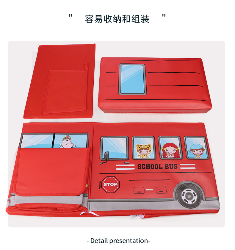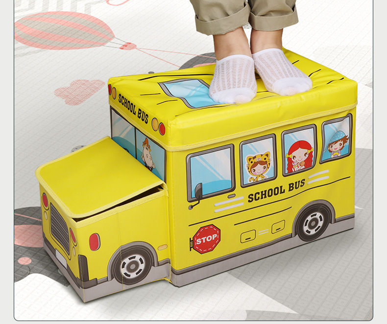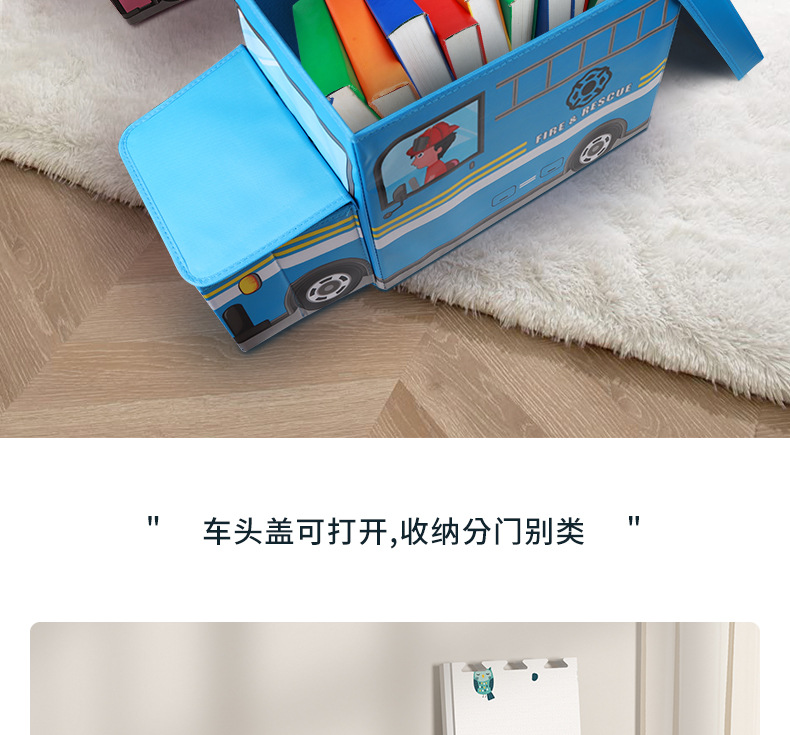 跨境卡通校车收纳箱可折叠收纳整理箱无纺布覆膜儿童玩具储物箱