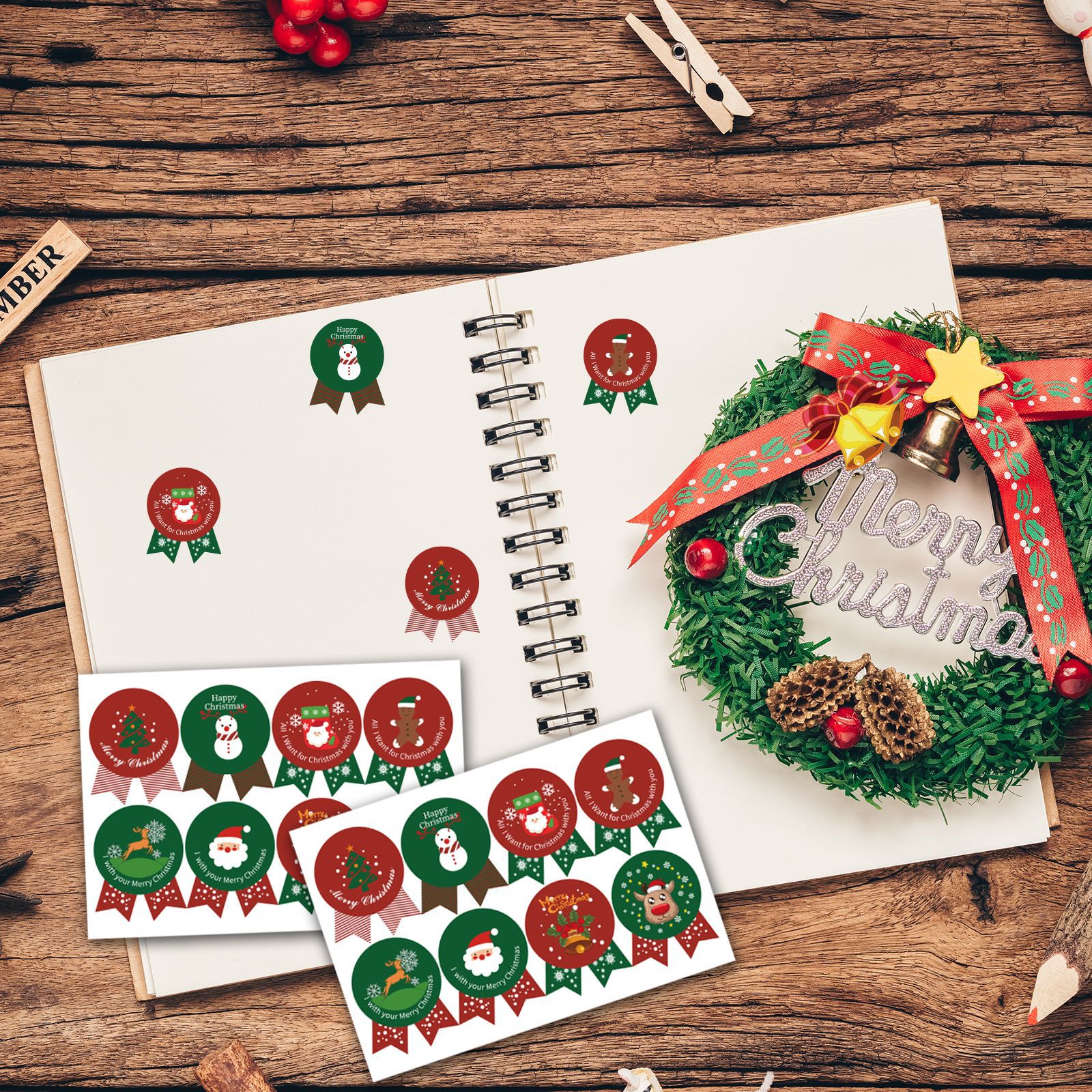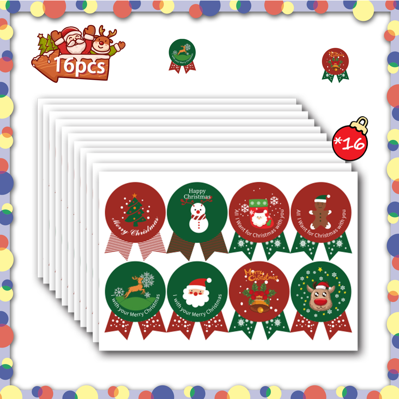 2024新商品創意クリスマスステッカー手書き装飾クリスマス奨励ステッカーサンタクロースクリスマスツリー