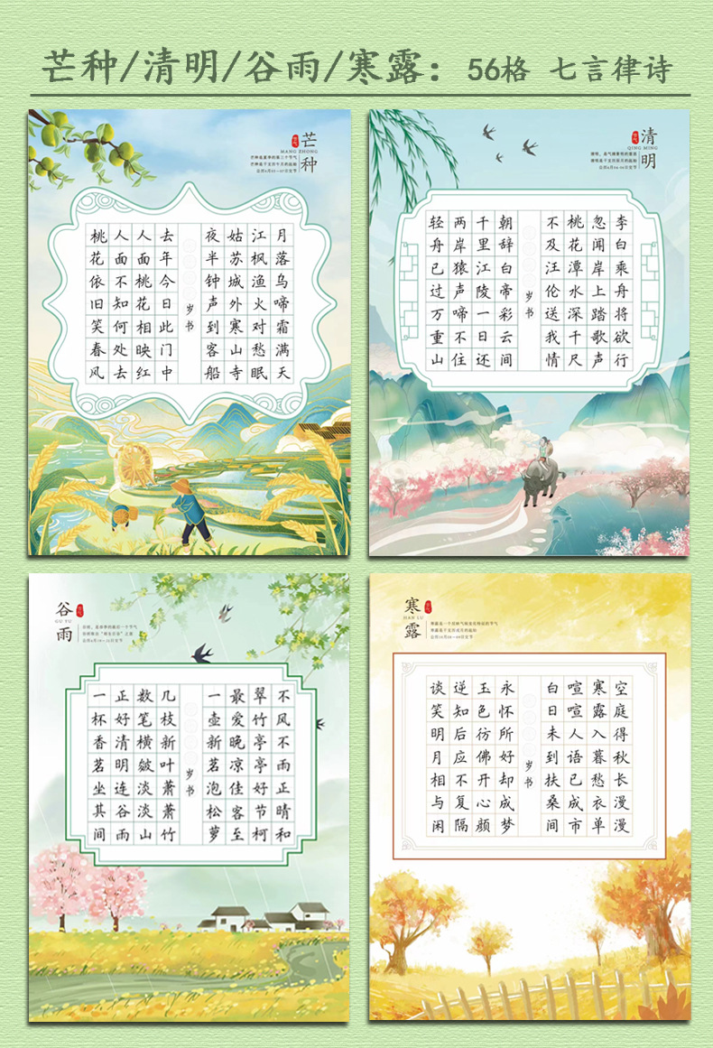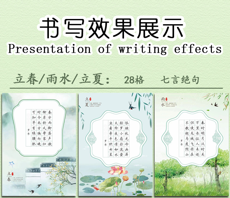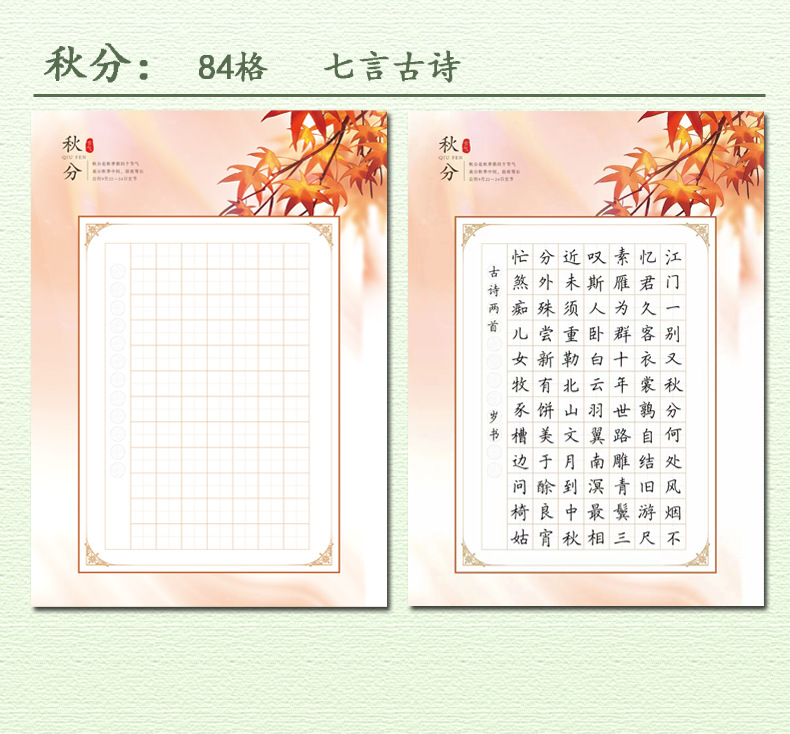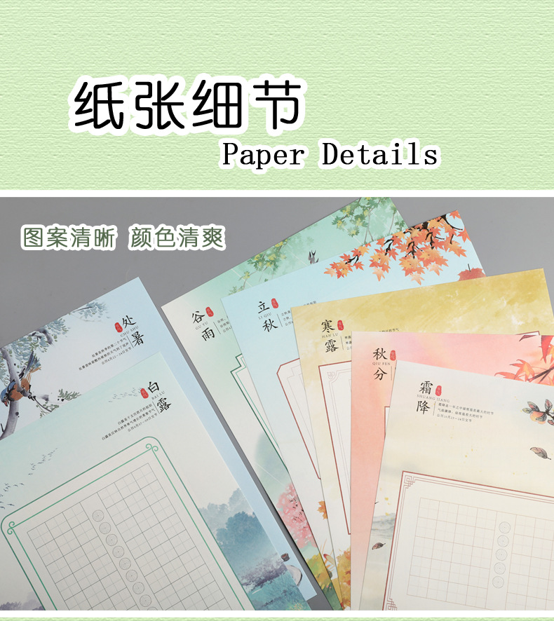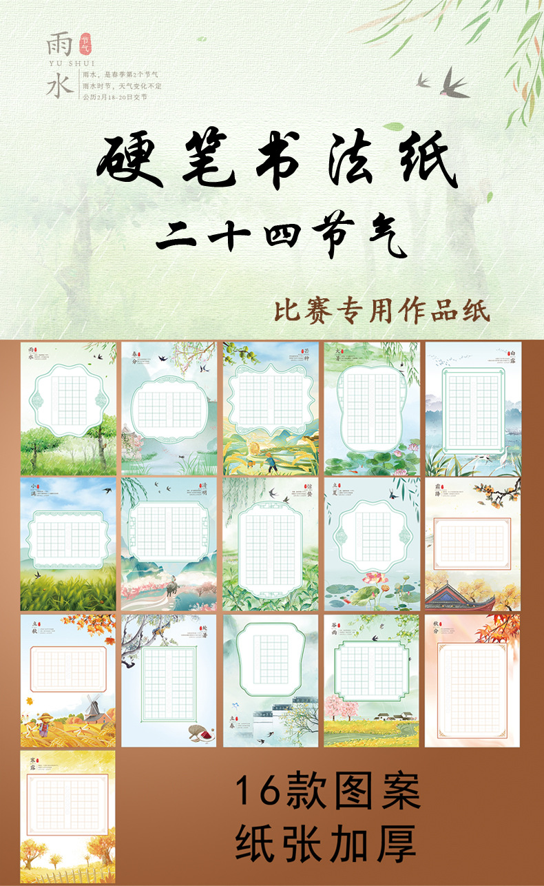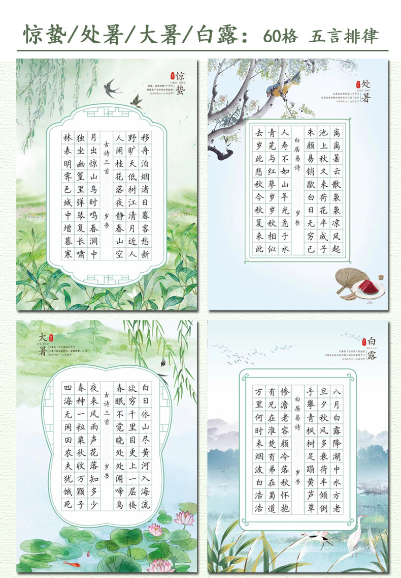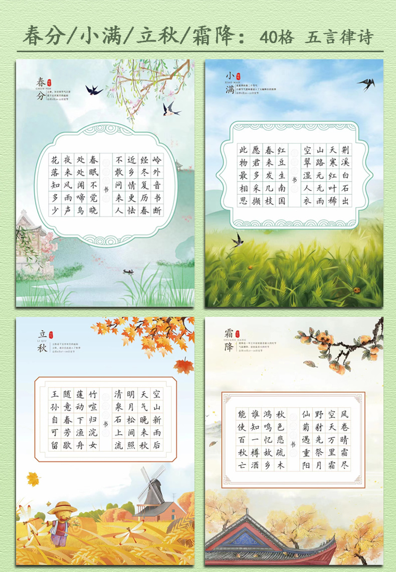 A4硬筆書道作品紙田字格万年筆練習字国風古文書き秋分霜降寒露24節気
